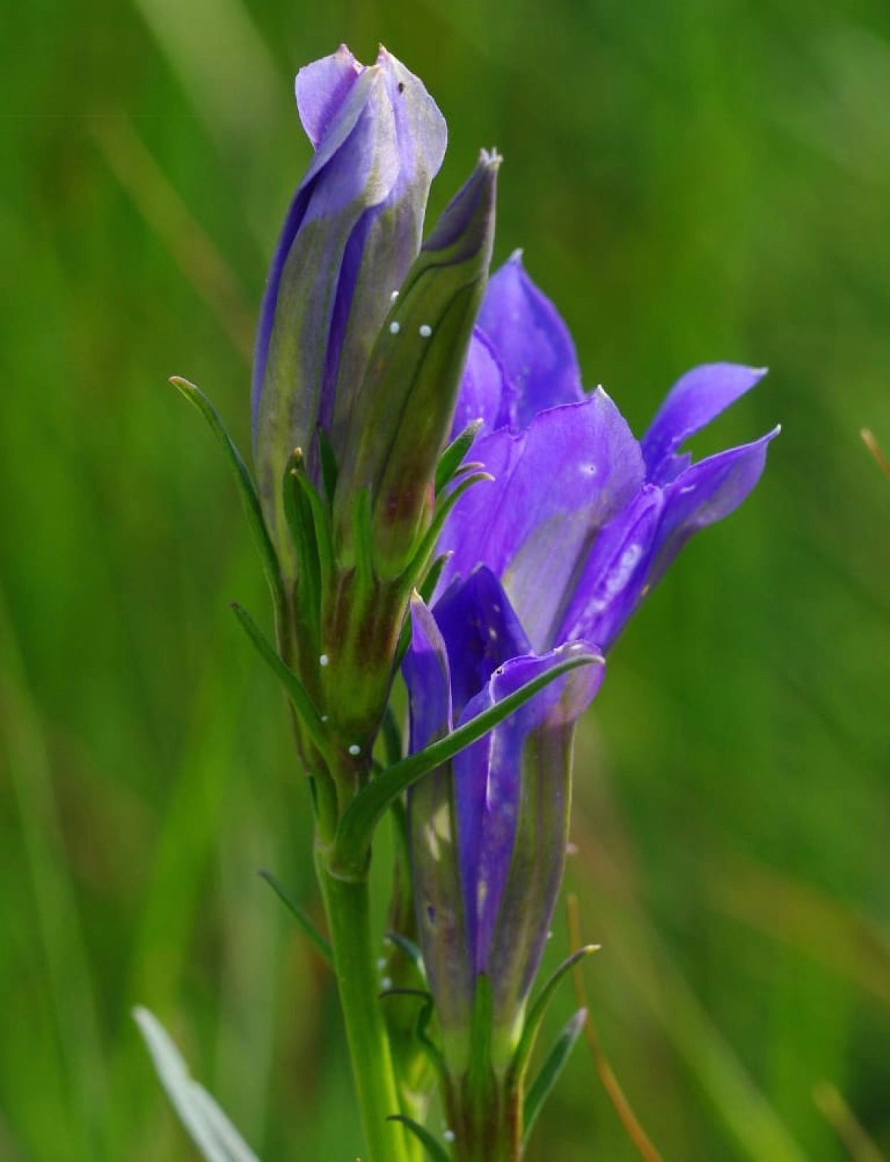 De rups eet zich vanuit het eitje direct de bloem in en voedt zich met de zachte delen, zoals het vruchtbeginsel. Het witte, lege hulsje van het eitje blijft echter nog lange tijd aanwezig en is eenvoudig te zien. Uit al deze eitjes groeien slechts enkele rupsen op tot het vierde stadium. Deze rupsen laten zich na circa tien dagen op de grond vallen en wachten daar tot ze worden gevonden door een bossteekmier Myrmica ruginodis of een moerassteekmier M. scabrinodis. De meeste rupsen laten zich vroeg in de avond vallen, want juist dan zijn de mieren het meest actief. De rups scheidt een stof af die de mier oplikt, waarna de rups wordt meegenomen naar het nest, de rups wordt vooral meegenomen omdat ze chemisch zeer sterk lijkt op een mierenlarve. Daar wordt hij behandeld als een eigen larve. Wanneer er eenmaal een rups in het nest is opgenomen, blijkt een volgende sneller te worden geaccepteerd. In het mierennest laat de rups zich voeden door de mierenwerksters met stukjes insectenprooien of met opgebraakt voedsel, hoewel soms ook wel van het mierenbroed wordt gegeten. Het gentiaanblauwtje volgt hiermee een zgn. koekoekstrategie. De rups verpopt zich het volgend voorjaar in dit nest. In één mierennest zijn maximaal twaalf volwassen rupsen of poppen gevonden.