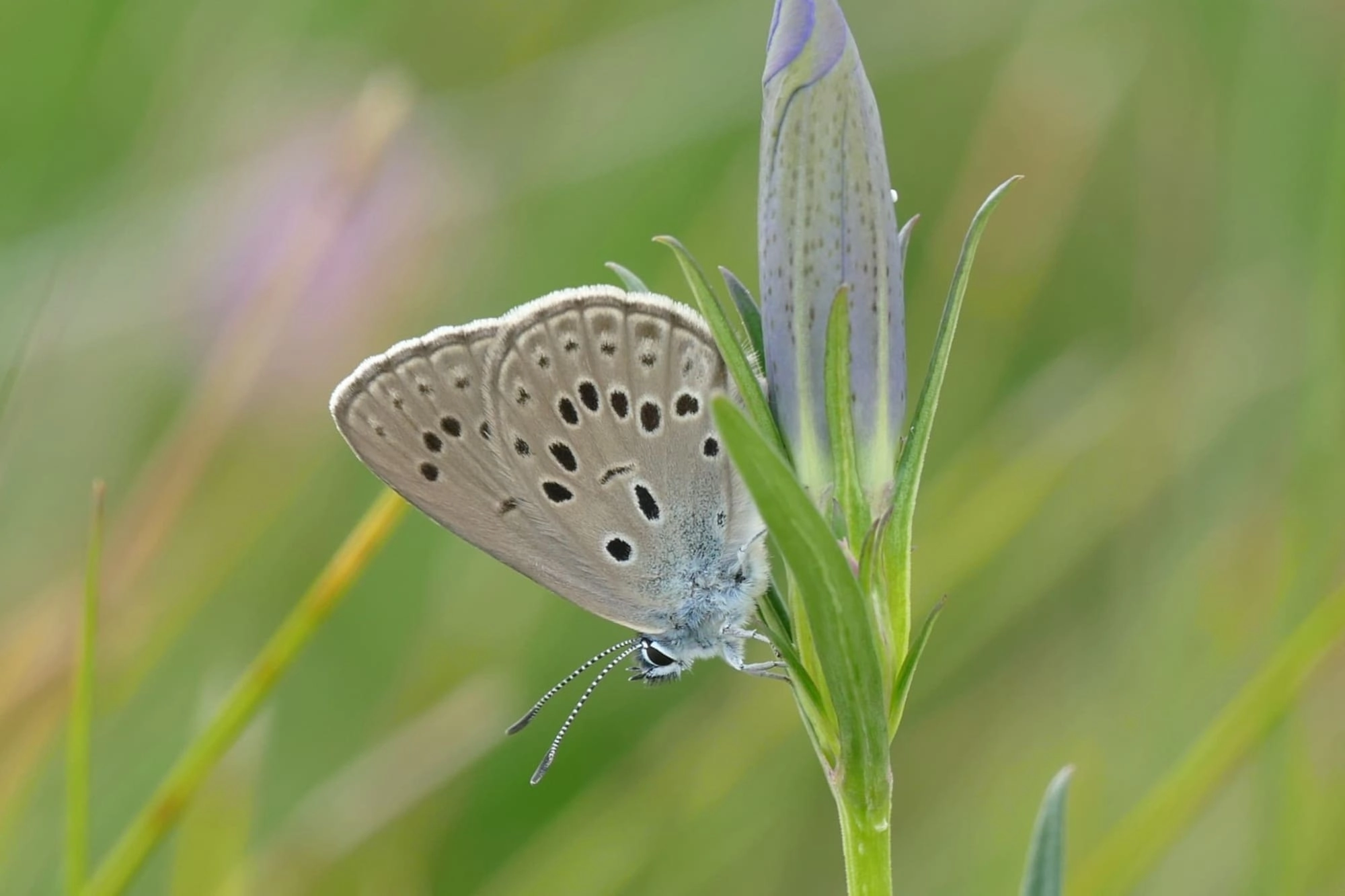 Op zoek naar een geschikte plek om eitjes af te zetten, fladdert het vrouwtje laag boven de vegetatie. De eitjes worden afgezet op zowel grote als kleine knoppen. Uit de gegevens van Landelijk Meetnet Vlinders blijkt dat gemiddeld iets meer dan twee eitjes per knop worden afgezet. Soms zet een vrouwtje twee tot vier eitjes één voor één af op dezelfde plant, maar dit gebeurt waarschijnlijk alleen in geval van legnood, bijvoorbeeld door aanhoudend slecht weer. Soms leggen ook nog andere vrouwtjes de eitjes op dezelfde plant. Het maximaal aantal getelde eitjes op één knop is zelfs 81 eitjes. In het begin van de vliegtijd zetten de vrouwtjes de eitjes af op planten die dicht bij de nesten van de waardmier groeien. Later in het seizoen, als de gentianen op deze plaatsen vol met eitjes zitten, worden de eitjes ook op planten afgezet die verder van deze nesten groeien.