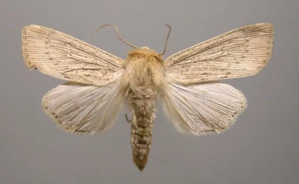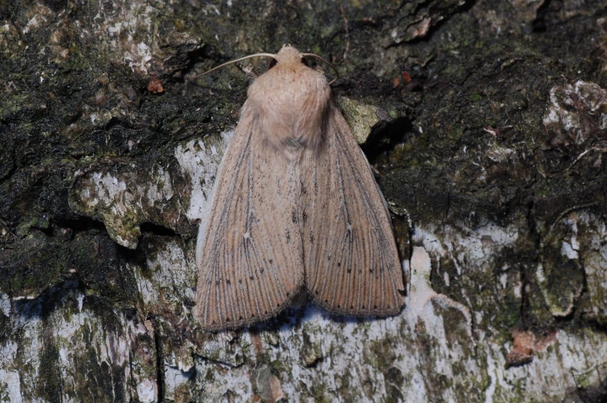 Gevlamde rietuil (Senta flammea).N.B.: vergelijk behalve de uiterlijke kenmerken ook de tijd van het jaar waarin de rupsen voorkomen, het habitat en de waardplant(en).