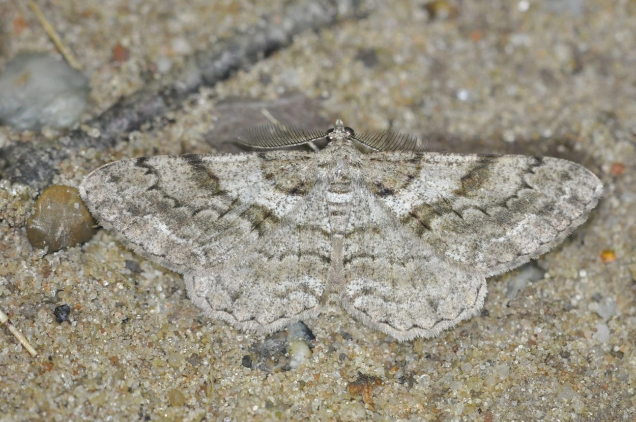 Voorvleugellengte: 17-20 mm. Lijkt sterk op de taxusspikkelspanner (P. rhomboidaria), maar is gemiddeld iets kleiner. De vleugels zijn in de meeste gevallen vrij zwaar gevlekt met donkere schubben, ook aan de onderzijde; af en toe komen zeer donkere exemplaren voor. De buitenste dwarslijn op de voorvleugel is bij de binnenrand van de vleugel sterk gekromd en bij de voorrand nauwelijks geknikt. De buitenste dwarslijn aan de onderzijde van de achtervleugel is in het midden niet gehoekt. Het mannetje heeft breed geveerde antennen en de kleine veertjes eindigen vrij abrupt 1 mm voor het uiteinde.