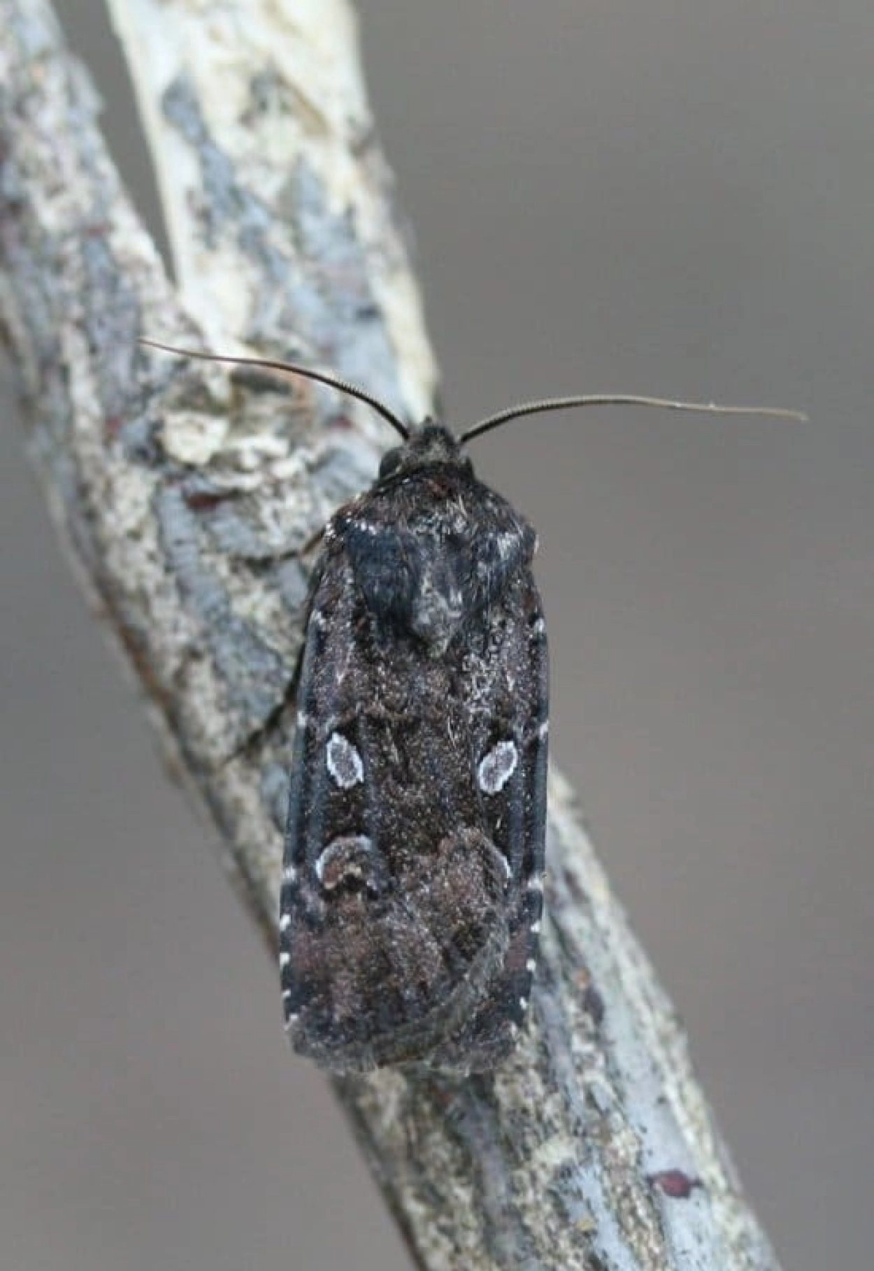 De late heide-uil (Xestia agathina) heeft een langwerpige ringvlek. Zie ook de zwartvlakworteluil (E. obelisca), de rookkleurige worteluil (E. nigricans), de variabele worteluil (E. cursoria), de witvlekworteluil (E. lidia) en de gekamde graanworteluil (E. aquilina).