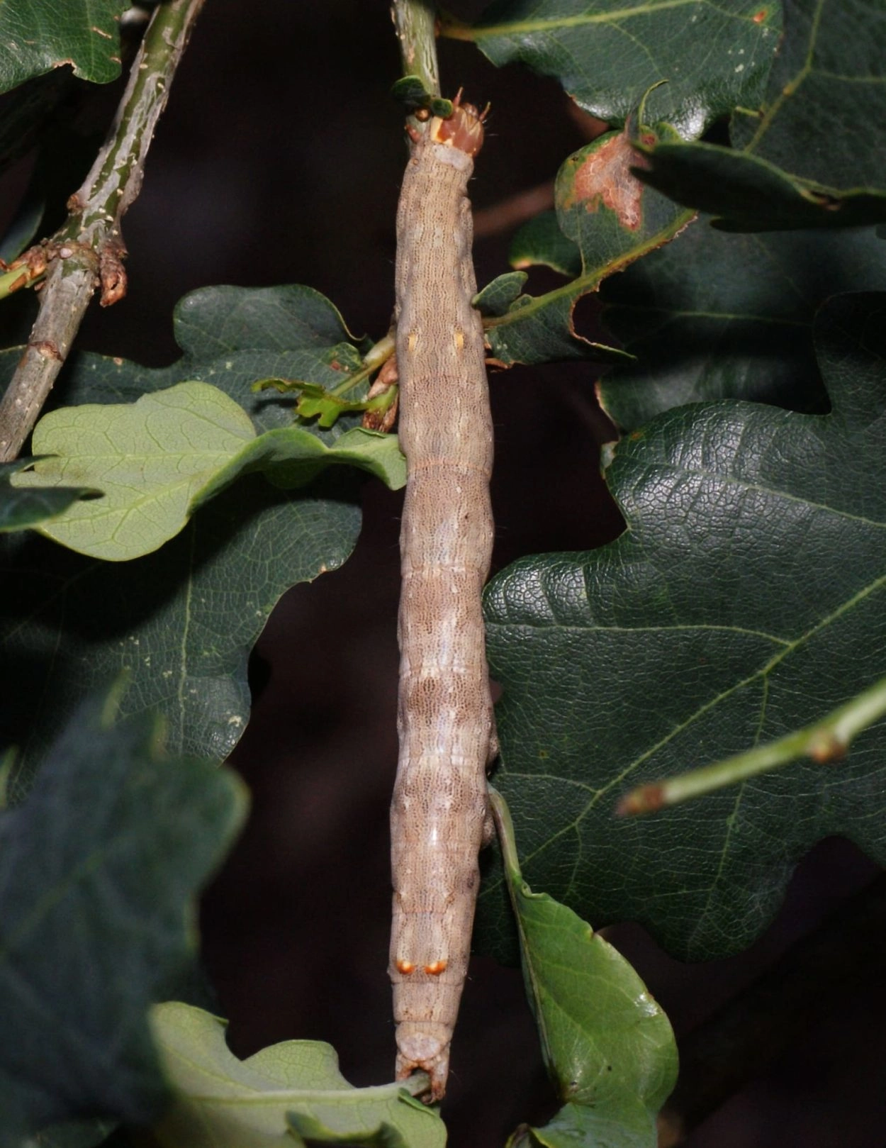 Rups: juni-augustus. De rups foerageert op de jonge loten van de waardplant en wordt vrijwel uitsluitend op kleine eiken aangetroffen met een zeer warme standplaats. De rupsen zitten opvallend vaak op eiken die door meeldauw aangetast zijn. De soort overwintert als pop in een stevige cocon in de strooisellaag.