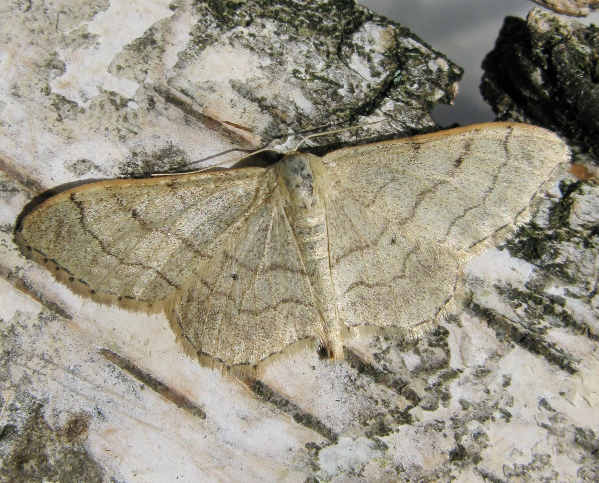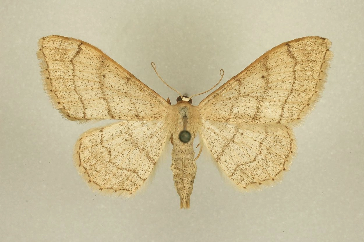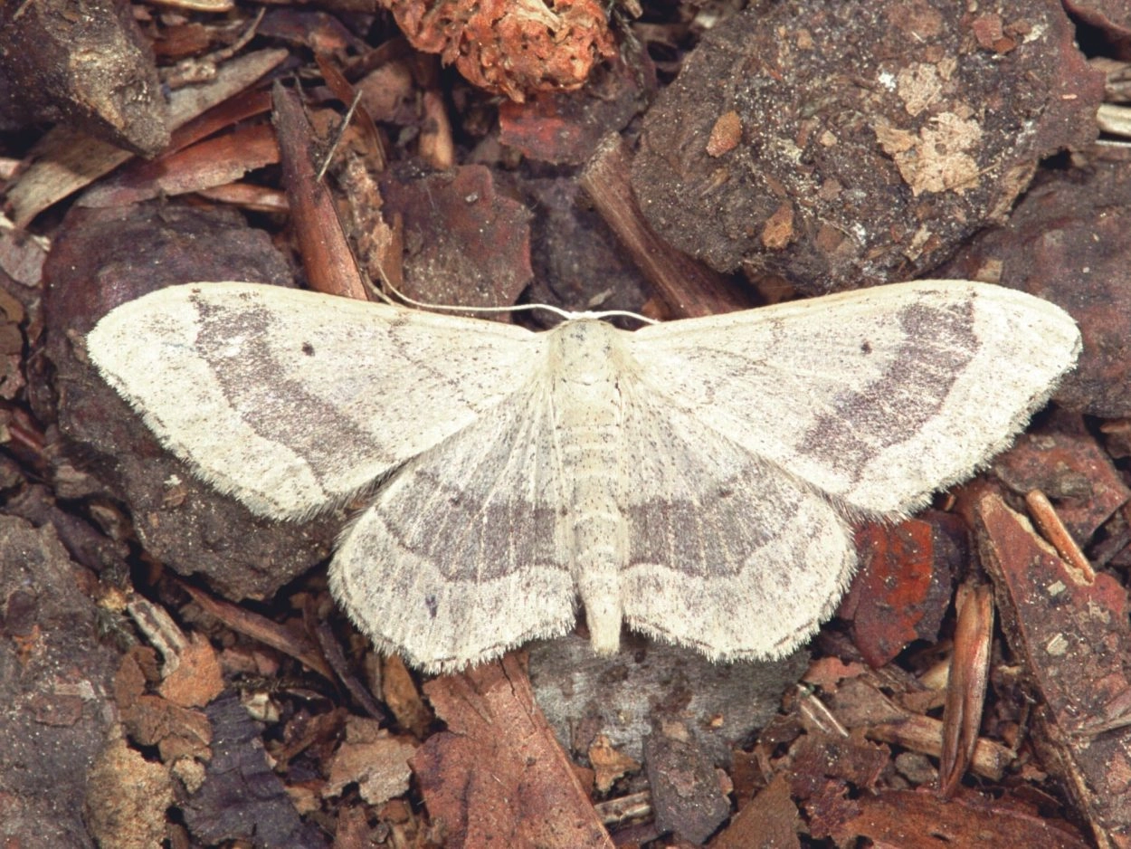 Egale stipspanner (Idaea straminata).N.B.: vergelijk behalve de uiterlijke kenmerken ook de tijd van het jaar waarin de rupsen voorkomen, het habitat en de waardplant(en).