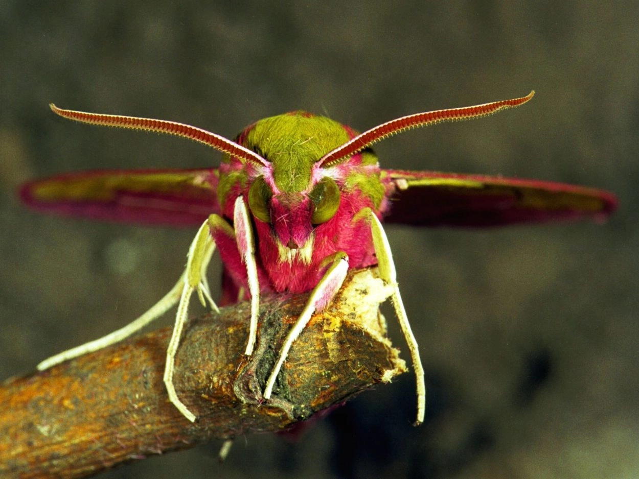 Wingerdpijlstaart (Hippotion celerio) en klein avondrood (Deilephila pocellus).N.B.: vergelijk behalve de uiterlijke kenmerken ook de tijd van het jaar waarin de rupsen voorkomen, het habitat en de waardplant(en).