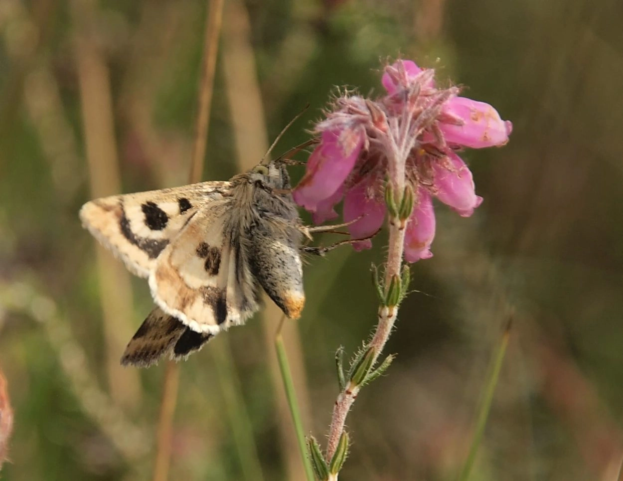 Eind mei-half augustus in twee generaties. De vlinders vliegen overdag bij zonnig weer en bezoeken bloemen van struikhei en dophei; planten op drassige kale grond hebben de voorkeur. De vlinders zijn ook ´s nachts actief en komen op licht.