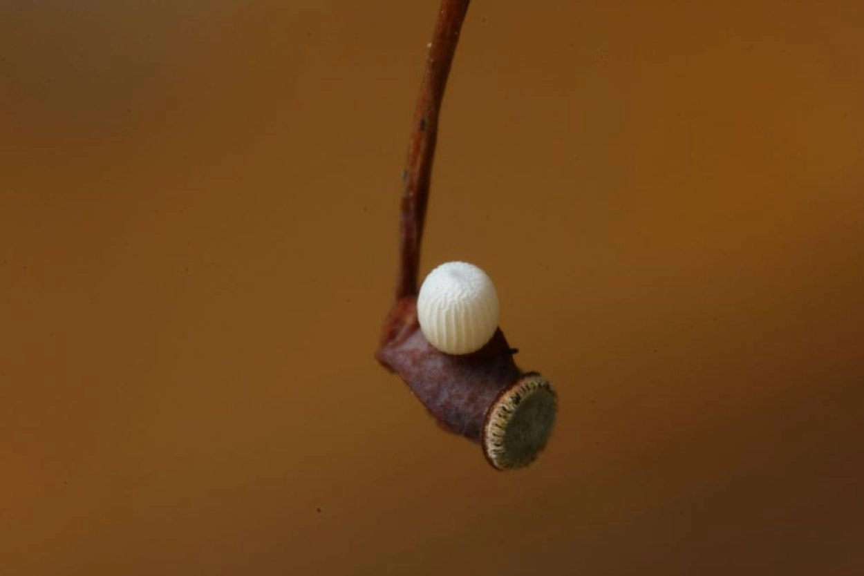 Na de paring duurt het nog 14 tot 18 dagen voordat de eitjes rijp zijn; de meeste eitjes zijn dus pas in de laatste decade van augustus rijp. Om een eitje af te zetten landt het vrouwtje op de grond en wandelt naar een geschikte plek. Het eitje wordt vlakbij de bodem afzonderlijk afgezet op groene of dorre delen van een waardplant. Ook zet ze de eitjes wel eens op ongeschikte planten, korstmossen of takjes af. Het vrouwtje selecteert hierbij op de structuur van de vegetatie en heeft een voorkeur voor graspollen omringd door kale bodem of een lagere vegetatie.