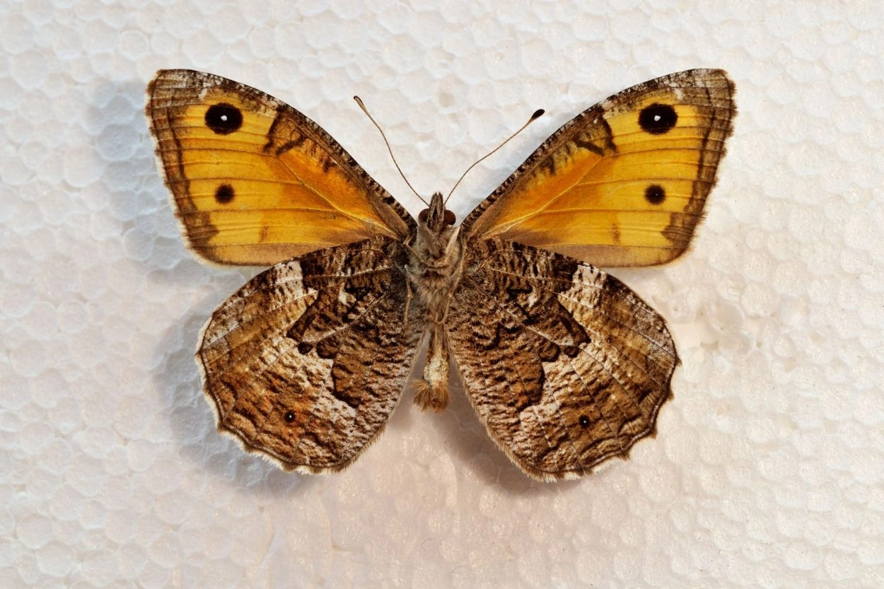 De onderkant van de voorvleugel is bij de kleine heivlinder bruin.