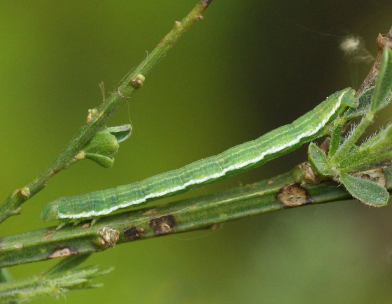Zomerbremspanner (Chesias rufata).N.B.: vergelijk behalve de uiterlijke kenmerken ook de tijd van het jaar waarin de rupsen voorkomen, het habitat en de waardplant(en).