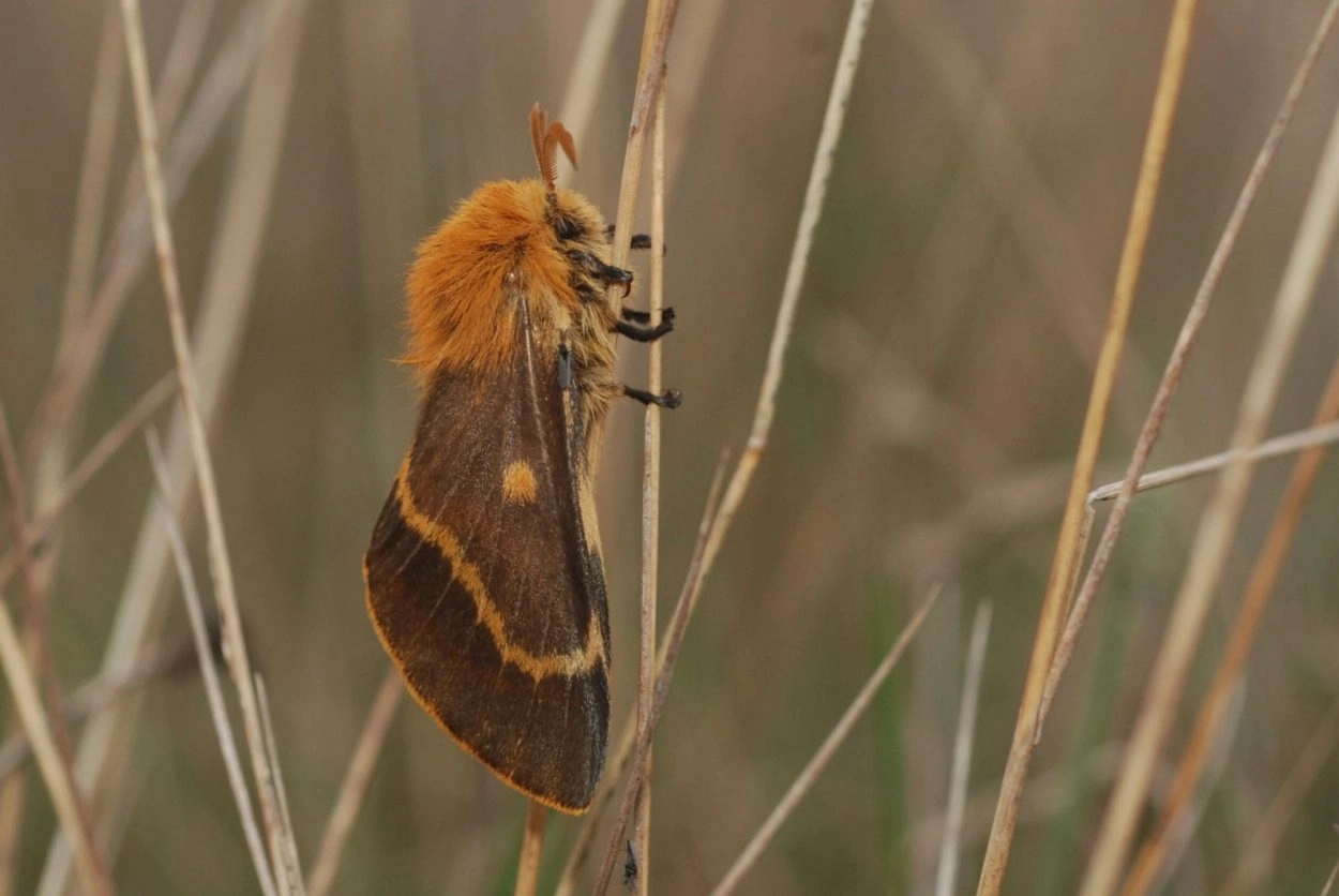 Zou verward kunnen worden met de wolspinner (Eriogaster lanestris) die soms ook in het najaar vliegt. Deze heeft echter een lichte vlek in het wortelveld. Qua tekening vertonen ook de kleine hageheld (Lasiocampa trifolii) en de hageheld (Lasiocampa quercus) gelijkenis, vooral de donkere mannetjes. Deze beide grotere soorten vliegen echter niet in het najaar.