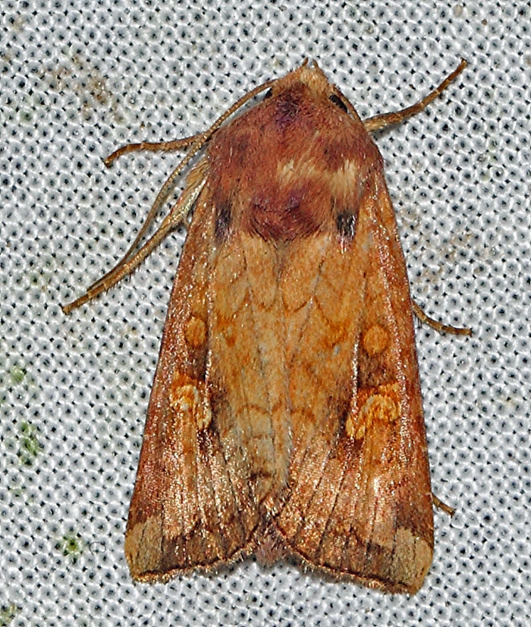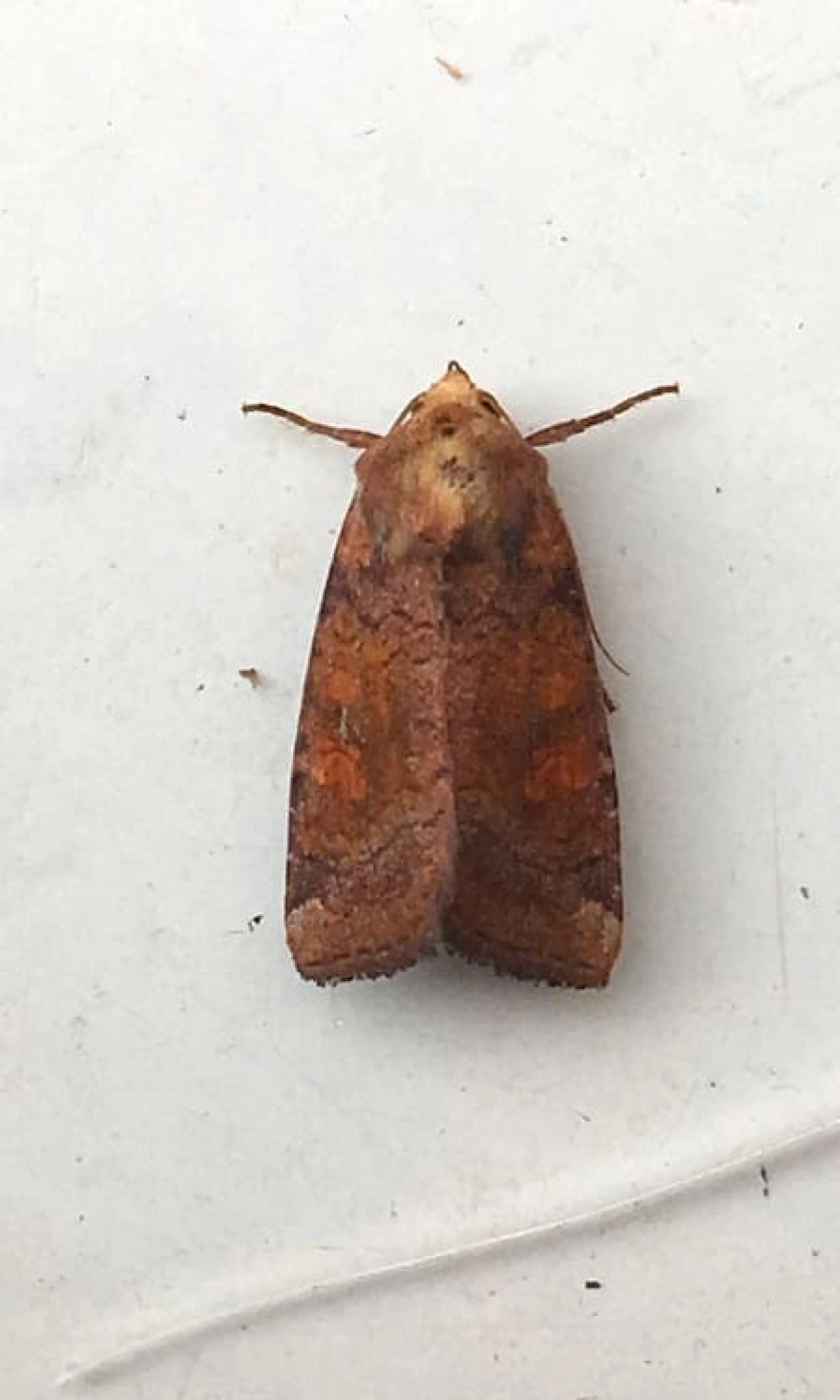 De geelbruine vlekuil (A. fucosa) is vaak lichter van kleur, meer leerkleurig bruin dan roodachtig bruin. De roodbruine vlekuil (A. oculea) is meestal iets kleiner en heeft een relatief bredere voorvleugel met een duidelijkere lijnentekening. Zie ook de halmrupsvlinder (Mesapamea secalis), het weidehalmuiltje (M. secalella) en de gele lis-boorder (Helotropha leucostigma).