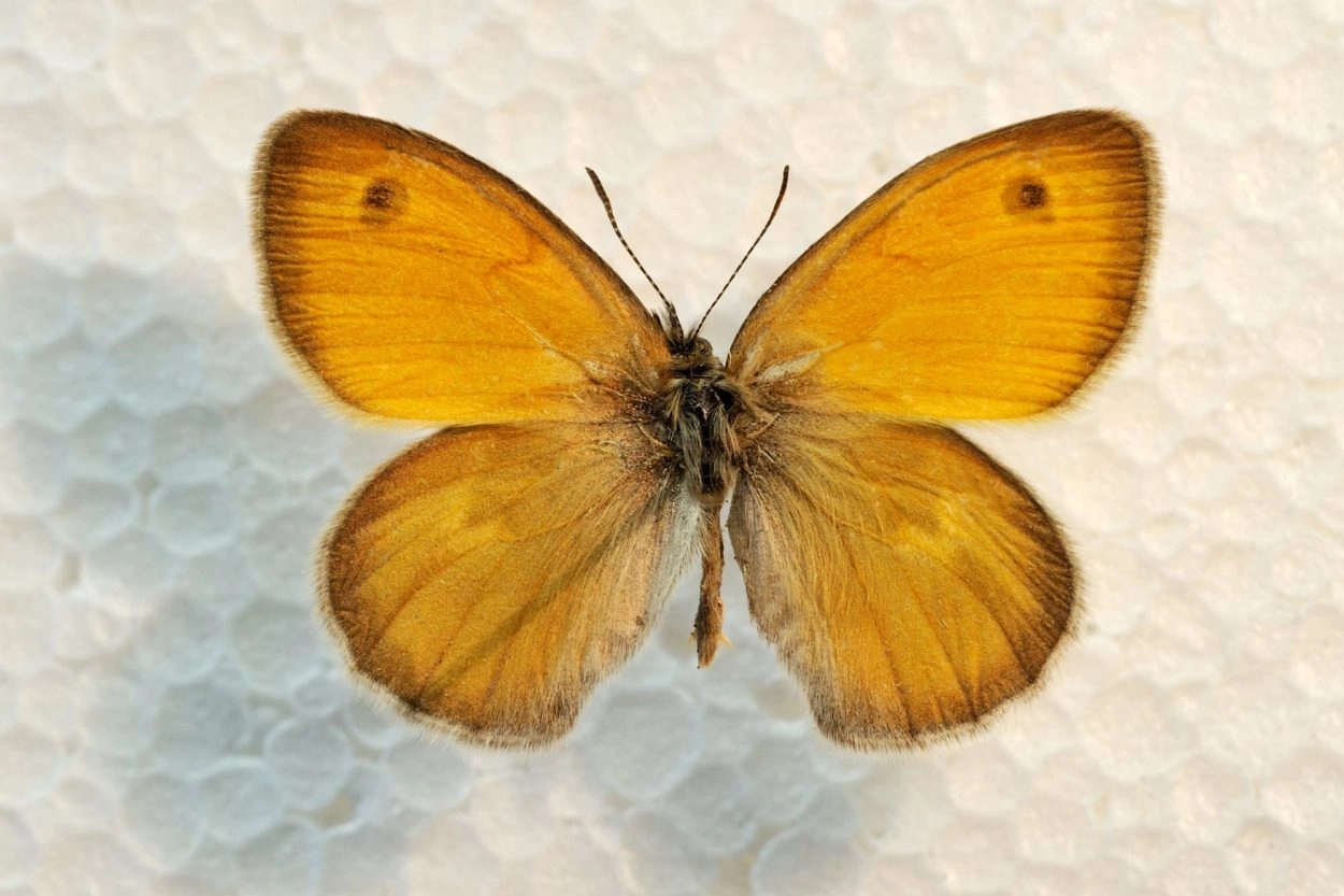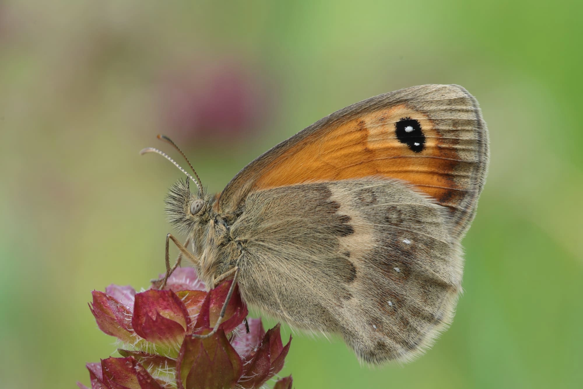 Veenhooibeestje (Coenonympha tullia).N.B.: vergelijk behalve de uiterlijke kenmerken ook de tijd van het jaar waarin de rupsen voorkomen, het habitat en de waardplant(en).