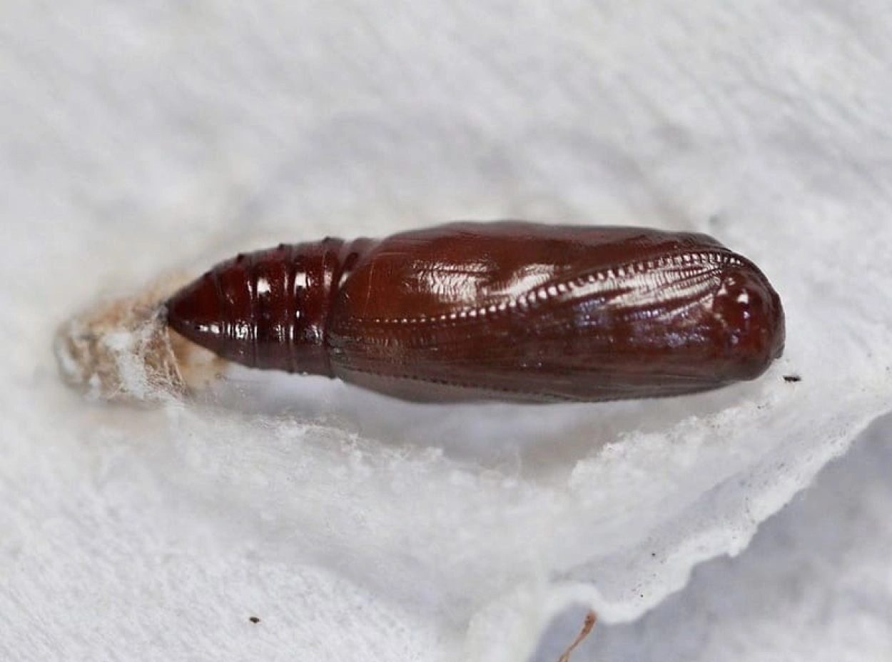 Rups: mei-augustus. De verpopping vindt plaats aan de onderzijde van een blad van de waardplant. De soort overwintert als vlinder in een holle boom, een bunker of een andere beschutte plaats; ook binnenshuis.