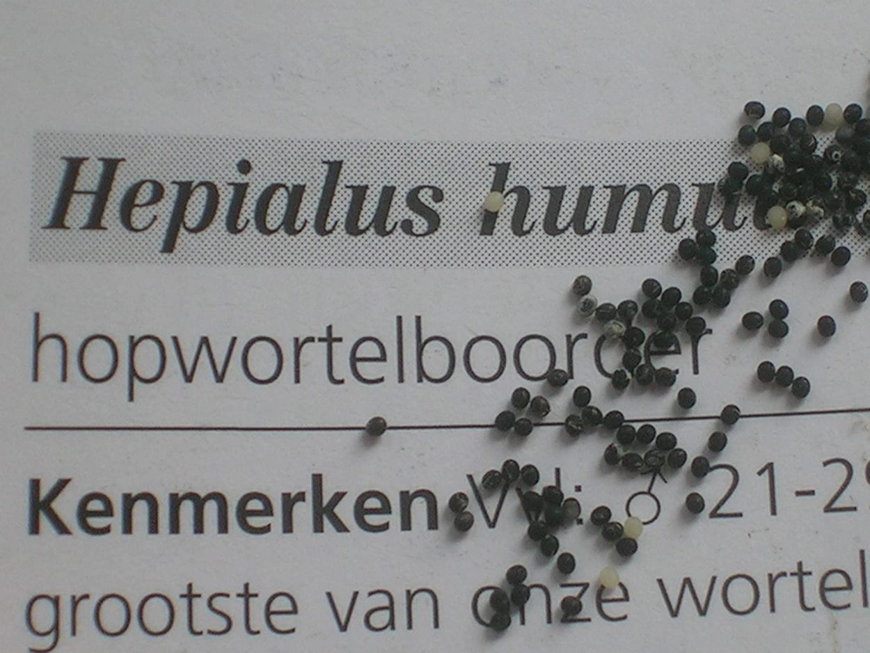 Oranje wortelboorder (Triodia sylvina), slawortelboorder (Pharmacis lupulina), gemarmerde wortelboorder (Korscheltellus fusconebulosa) en heidewortelboorder (Phymatopus hecta).N.B.: vergelijk behalve de uiterlijke kenmerken ook de tijd van het jaar waarin de rupsen voorkomen, het habitat en de waardplant(en).