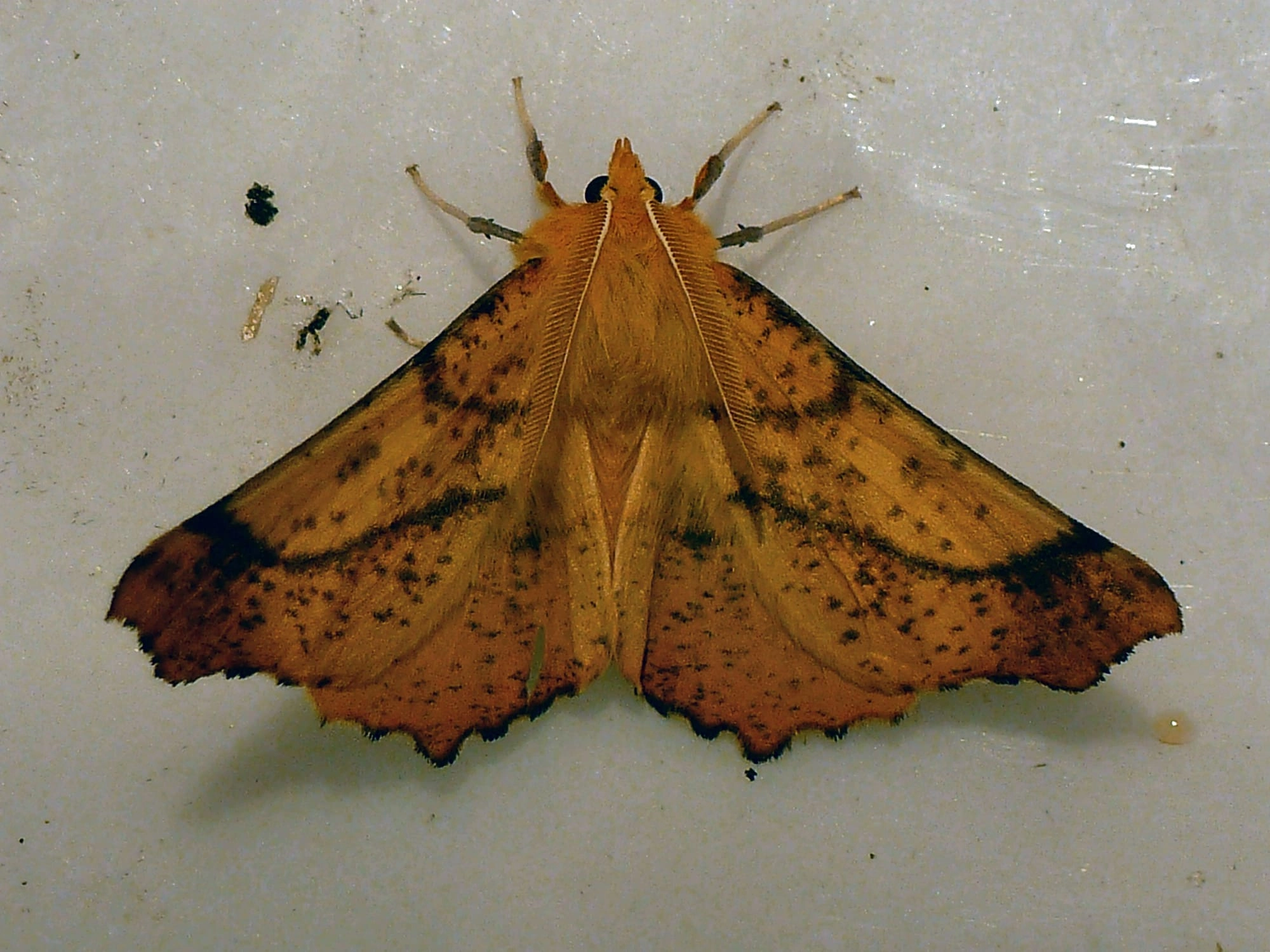 Voorvleugellengte: 21-28 mm. Deze spanner houdt, evenals de andere Ennomos-soorten, de vleugels in rust schuin omhoog. De donkere spikkeling varieert sterk in dichtheid maar ontbreekt zelden. De intensiteit van de dwarslijnen varieert. Het mannetje heeft geveerde antennen, het vrouwtje ongeveerde. De vrouwtjes zijn veel groter dan die van de andere Ennomos-soorten, de mannetjes zijn ongeveer even groot als de vrouwtjes van de andere soorten.