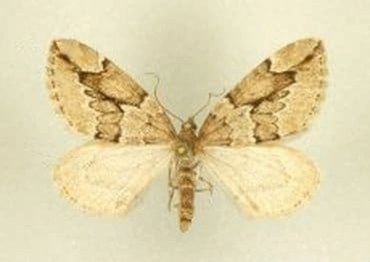 Voorvleugellengte: 11-14 mm. Een fijn getekende, licht bruinachtig grijze spanner. De variabele middenband lijkt opgebouwd uit een serie afzonderlijke vlekken die bij de binnenrand van de vleugel soms los van elkaar liggen. De middenband wordt afgegrensd door zwarte dwarslijnen, die via een witachtige afzetting grenzen aan een lichtere zone en daartegen scherp afsteken. De binnenzijde van de middenband heeft een opvallende scherpe inkeping. In de vleugelpunt ligt een rijtje van drie (soms één of twee) diagonale zwarte streepjes, die soms doorlopen tot aan de middenband. Het vrouwtje is kleiner dan het mannetje en heeft een smallere voorvleugel.