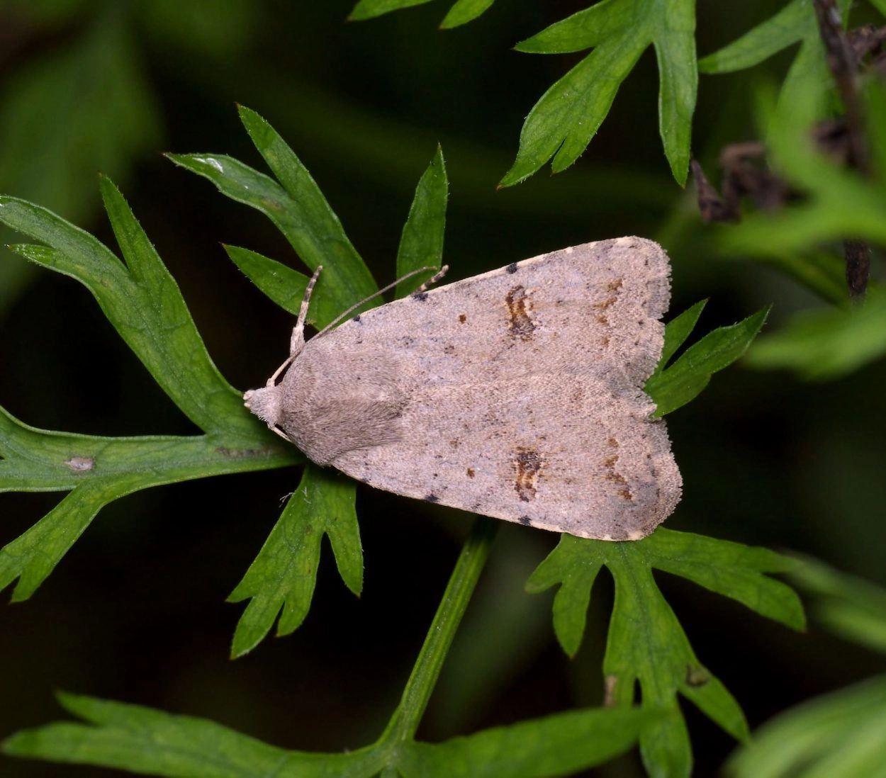 Voorvleugellengte: 12-15 mm. De voorvleugels van deze stofuil zijn lichtgrijs en grotendeels ongetekend. Het opvallendste kenmerk is de smalle donkere niervlek; deze is van binnen bruin/grijs en heeft een dikke roodbruin met zwartachtige rand. Aan de omtrek ervan bevinden zich vele, grotendeels aaneengesloten geelachtig witte stipjes. De ringvlek is niet meer dan een donkere stip of nagenoeg onzichtbaar. Van de golflijn is meestal slechts het middendeel aan de binnenzijde afgezet met onduidelijke bruine pijlvlekken. De achtervleugel is (grijsachtig) wit met zeer vaag donker beschaduwde aders; bij het vrouwtje is dit in sterkere mate het geval en is ook de zoom langs de franjelijn donker.