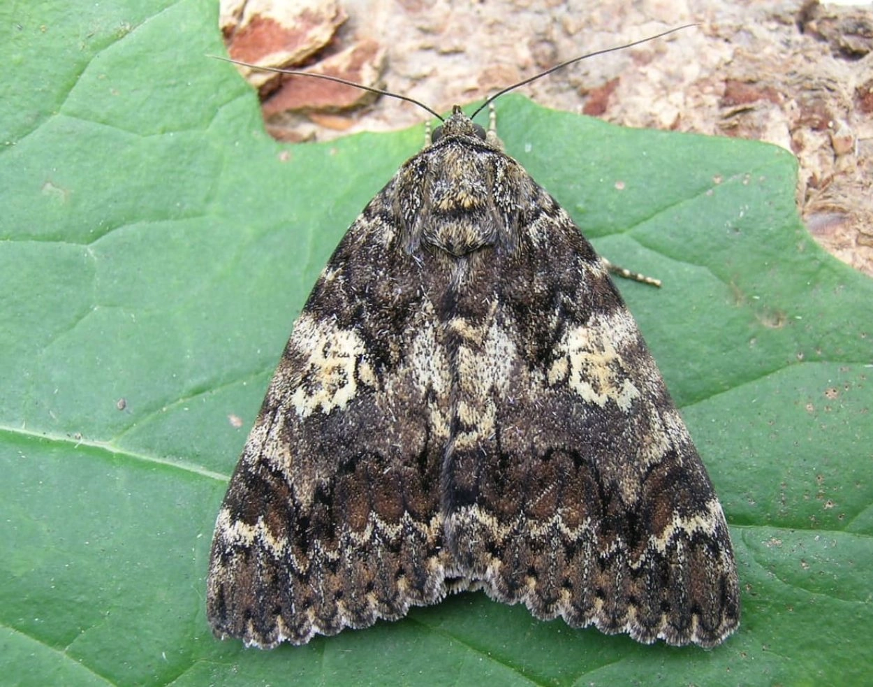 Blauw weeskind (Catocala fraxini), rood weeskind (Catocala nupta) en bruine sikkeluil (Laspeyria flexula). N.B.: vergelijk behalve de uiterlijke kenmerken ook de tijd van het jaar waarin de rupsen voorkomen, het habitat en de waardplant(en).