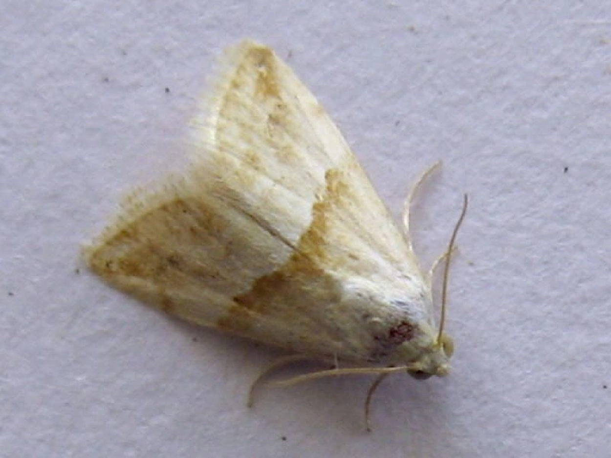 Voorvleugellengte: 7-8 mm. Deze kleine spinneruil kan gemakkelijk worden aangezien voor een microvlinder. De voorvleugel heeft een geelachtig witte grondkleur met in het midden een opvallende bruin met witte dwarslijn, die de vleugel min of meer in tweeën deelt. De buitenste dwarslijn heeft de vorm van een vraagteken. De vleugelpunt en de zone aan de binnenzijde van de dwarslijn in het midden van de voorvleugel zijn vaak bruinachtig gekleurd.