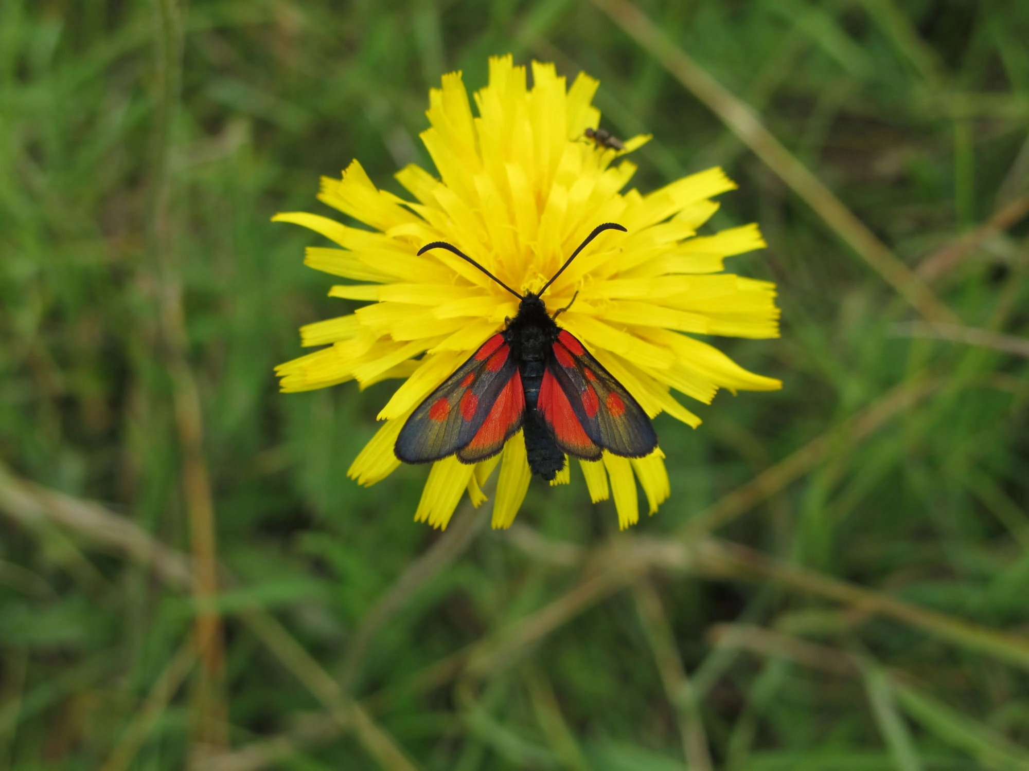 De vijfvlek-sint-jansvlinder (Z. trifolii) is groter en forser en heeft puntigere en minder doorschijnende vleugels. De sint-jansvlinder (Z. filipendulae) heeft zes vlekken op de voorvleugel en heeft eveneens minder doorschijnende vleugels.Bekijk de gedetailleerde verschillen met illustraties tussen de drie Zygaena-soorten.