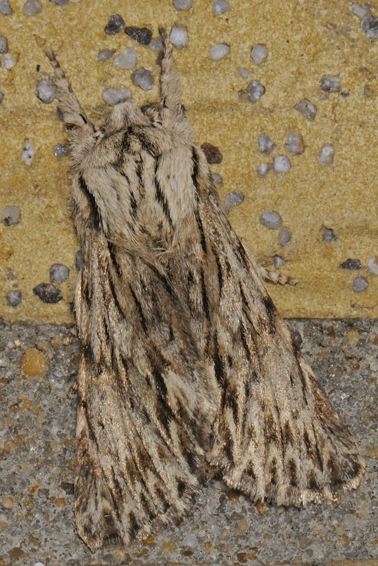 Voorvleugellengte: 17- 22 mm. Deze uil heeft een karakteristiek uiterlijk door het forse, sterk behaarde borststuk en de streperige brede voorvleugel. De grondkleur van de voorvleugel is doorgaans lichtgrijs of bruinachtig staalgrijs; sommige exemplaren zijn meer olijfkleurig bruin. De lange zwarte streep in het wortelveld is altijd goed zichtbaar en in het zoomveld bevindt zich een lichte, diep zigzaggende golflijn. Er is weinig variatie. Het mannetje heeft geveerde antennen.