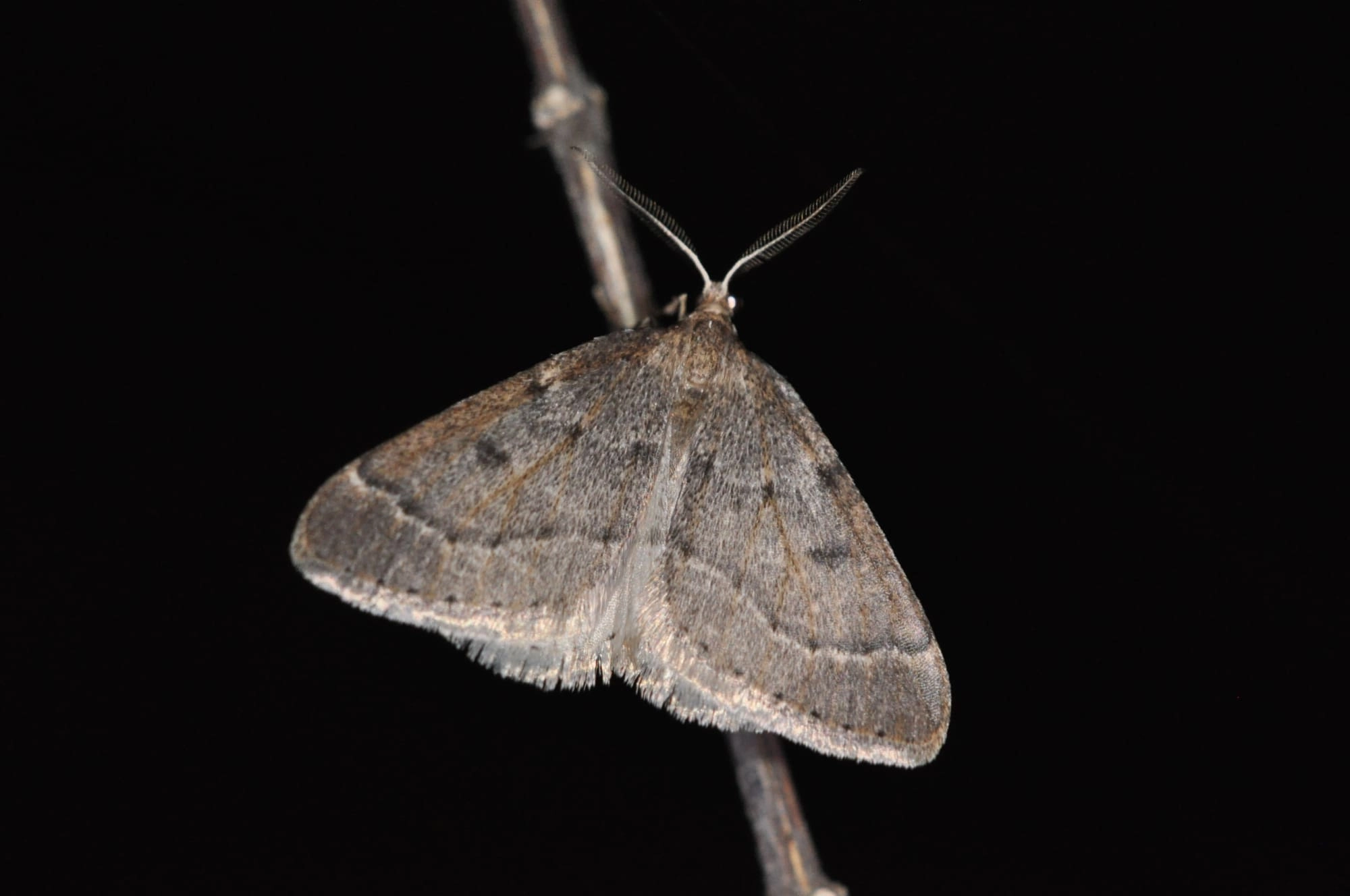 Januari-begin april in één generatie. De mannetjes vliegen vanaf de schemering; ´s nachts kunnen ze op kale takken van de waardplant worden gevonden, soms parend met een vrouwtje.