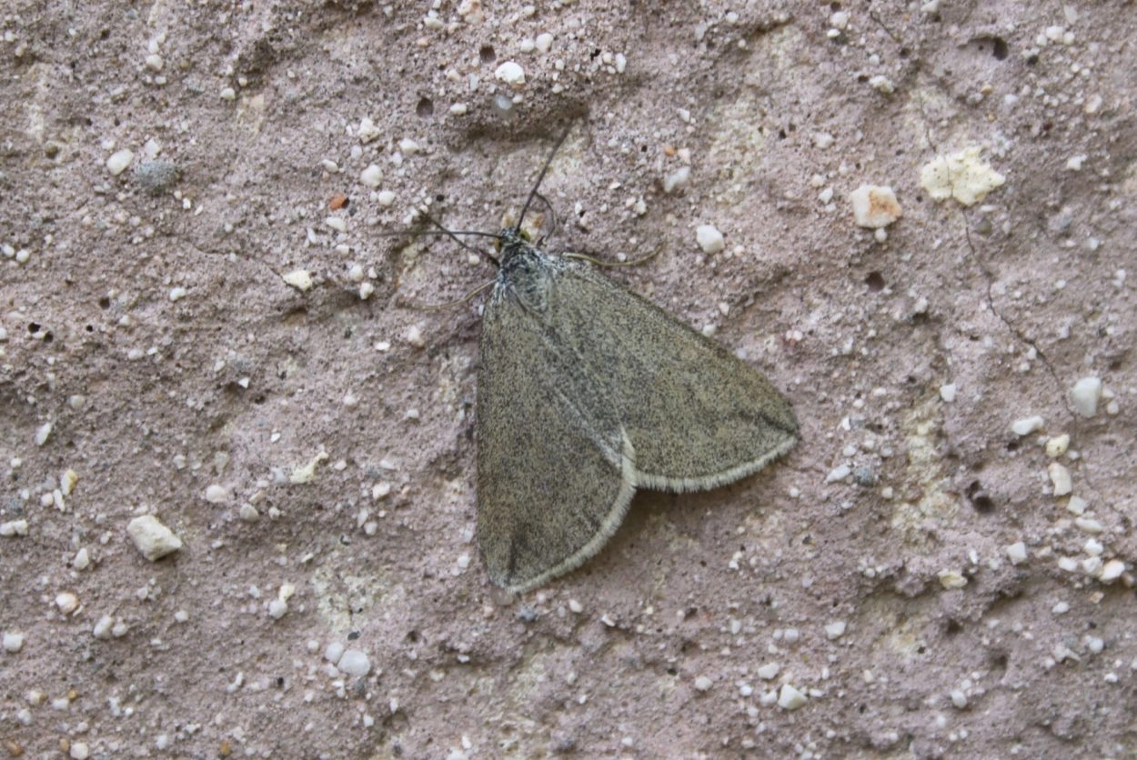 Voorvleugellengte: 14-16 mm. Een vrijwel effen lichtgrijze spanner met een vrij spits toelopende voorvleugel. Langs de achterrand loopt een zeer fijn donker lijntje en in het zoomveld is soms een vage bruinachtige buitenste dwarslijn zichtbaar. De franje is wit.