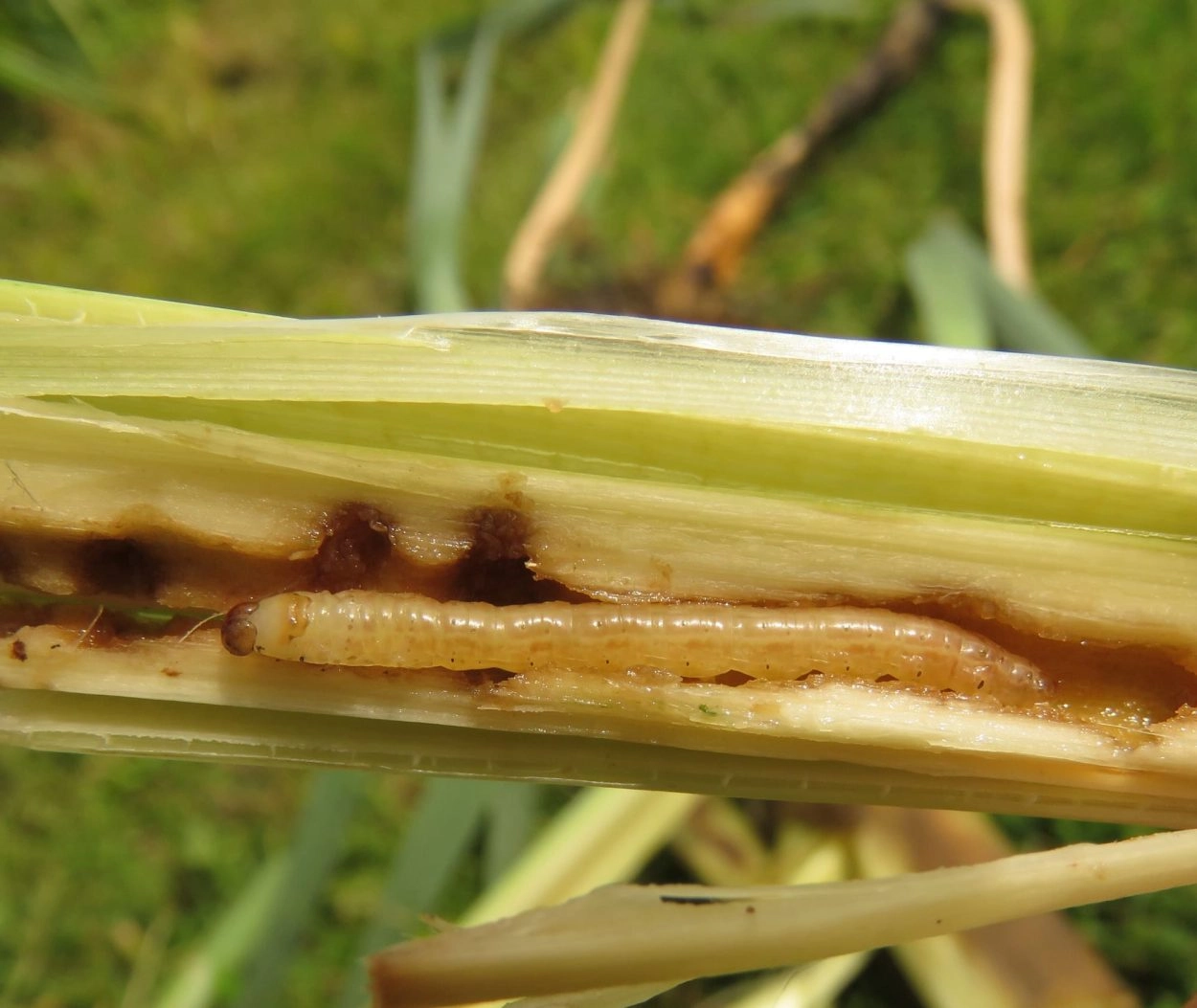 Rups: april-juli. De rups leeft in de stengel van de waardplant, eerst bovenin en later dieper naar beneden. Tijdens de groei wisselt de rups diverse malen van plant en laat daarbij opvallende gaten achter in de stengels. De verpopping vindt plaats met de kop naar beneden in de stengel van de laatste plant waarin hij gefoerageerd heeft of in een dode stengel. De soort overwintert als ei.