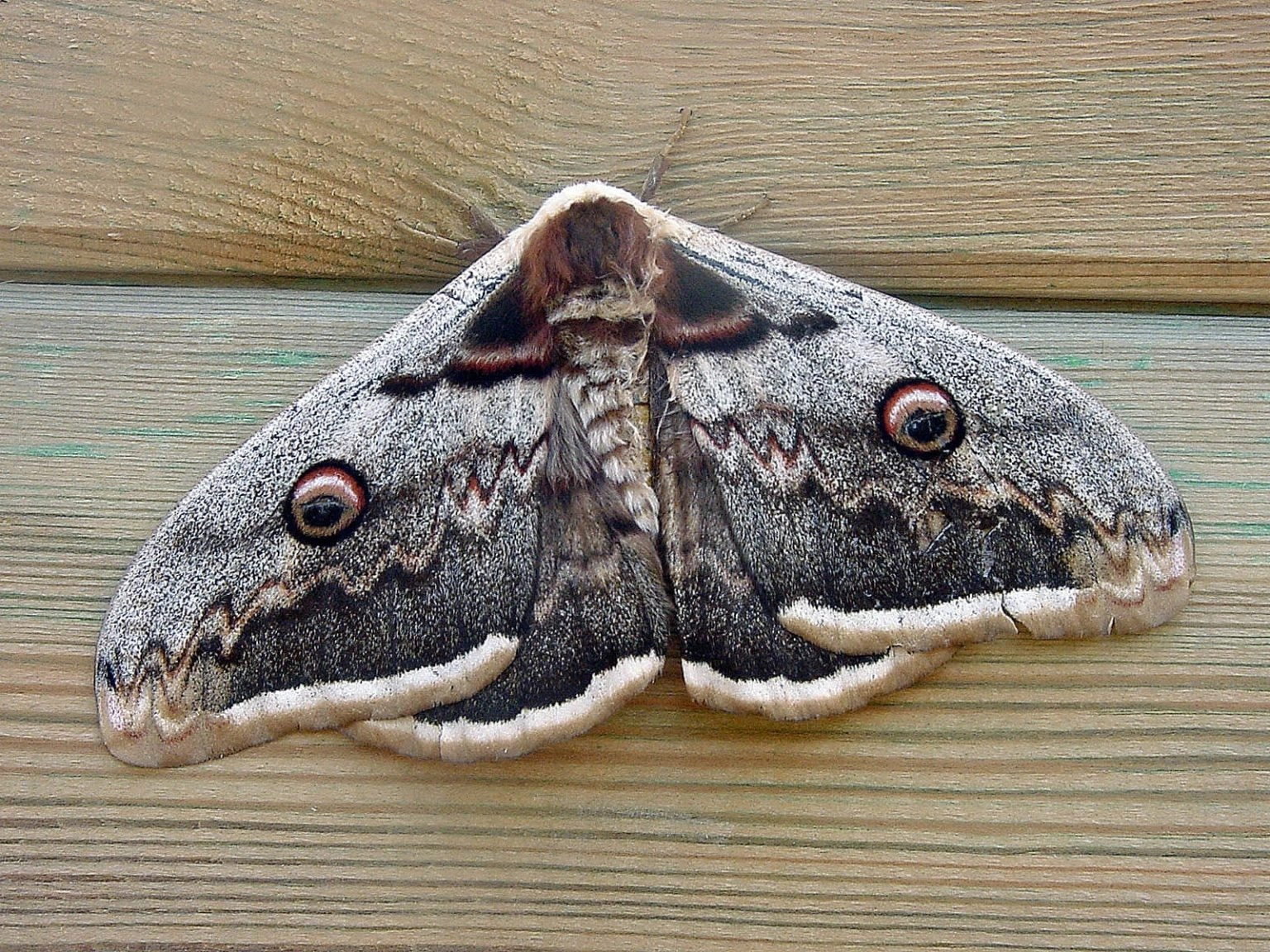 De grote nachtpauwoog (S. pyri) is donkerder en bovendien veel groter.