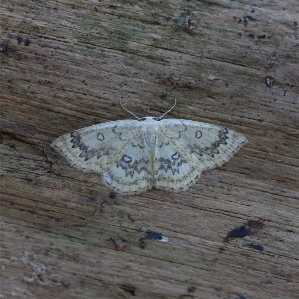 Voorvleugellengte: 11-14 mm. Een goed herkenbare roomkleurige spanner met zowel op de voor- als de achtervleugel een ringvormige vlek en een uniek en verfijnd patroon van gevarieerde zwarte dwarslijnen: een geschulpte binnenste en getande buitenste dwarslijn, de laatste aan de binnenzijde vergezeld door een donkere schaduw, en een onderbroken franjelijn. De tekening kan enigszins variëren in intensiteit. Soms ontbreken de ringvormige vlekken.