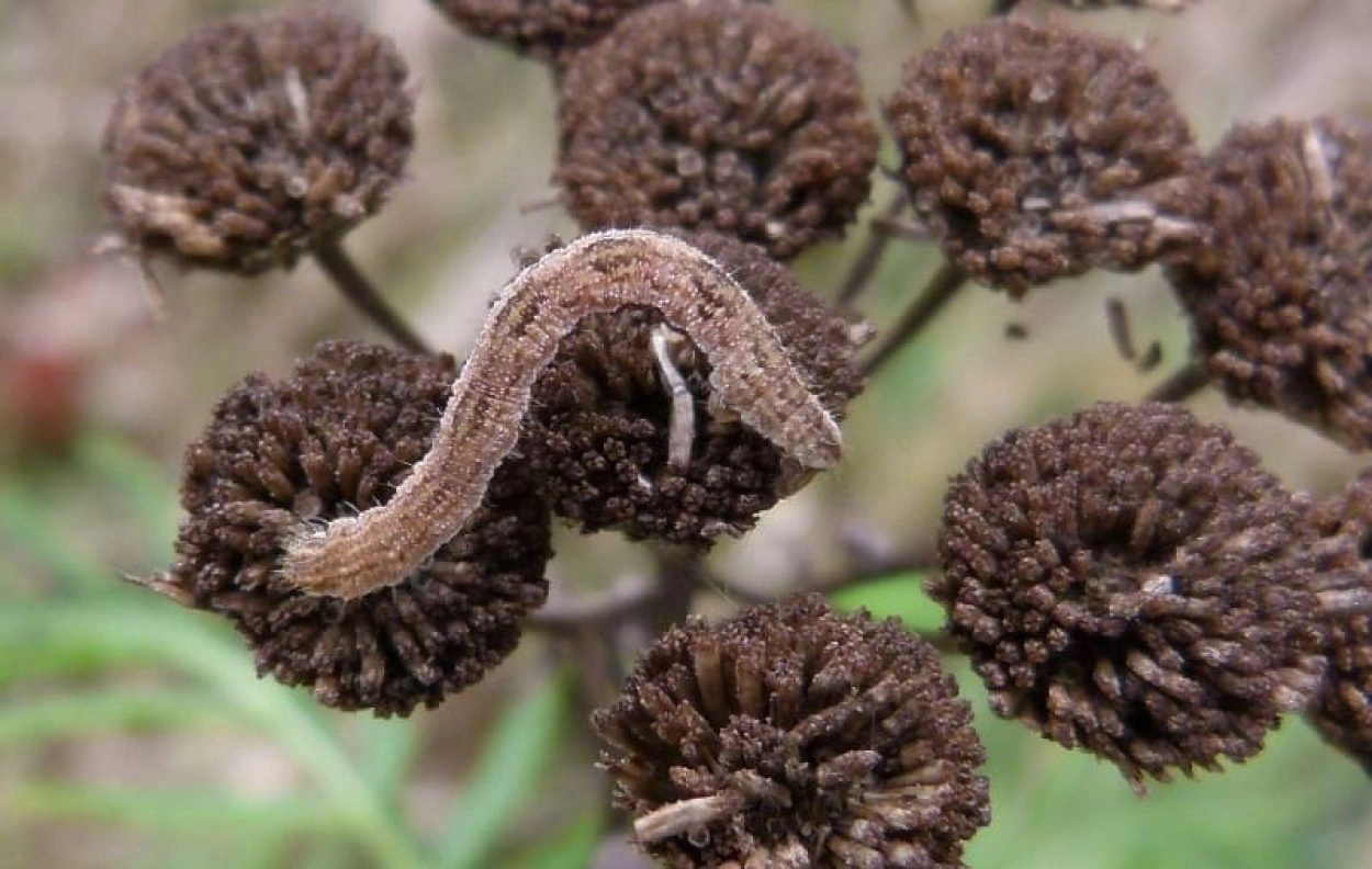 Rups: juli-november. De rups foerageert op de bloemen en zaden van de waardplant en verbergt zich overdag onder of tussen de bloemen. De soort overwintert als pop in de strooisellaag.