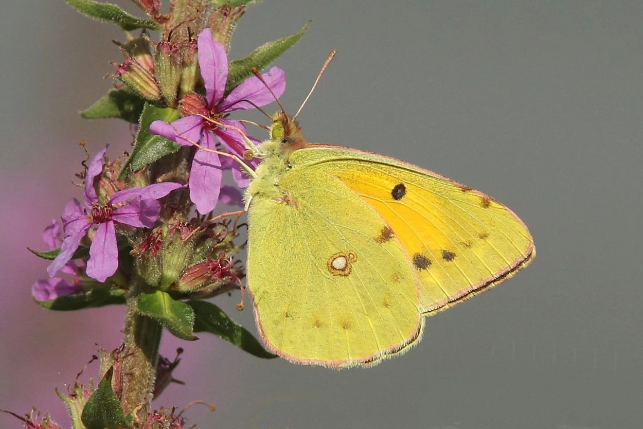 Gele luzernevlinder (Colias hyale).N.B.: vergelijk behalve de uiterlijke kenmerken ook de tijd van het jaar waarin de rupsen voorkomen, het habitat en de waardplant(en).