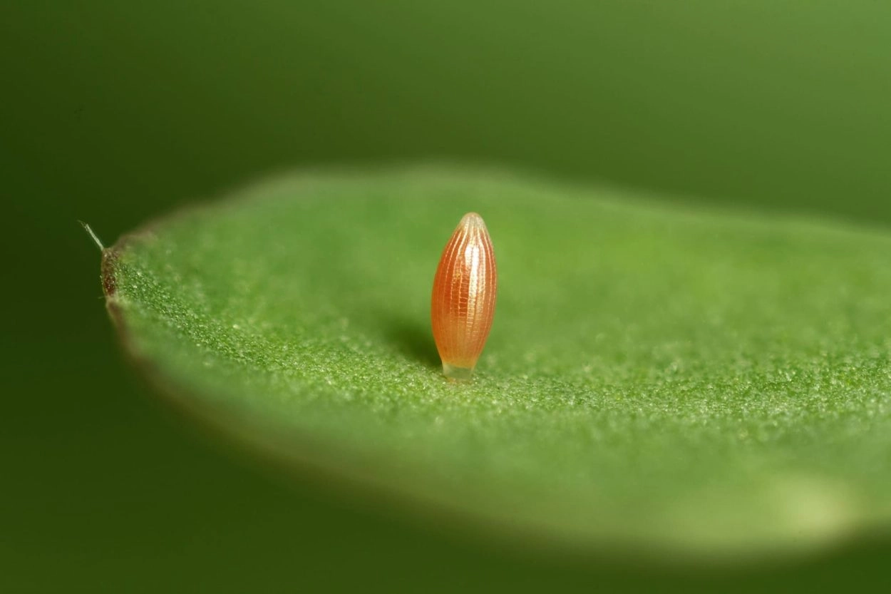 Het vrouwtje zet de eitjes afzonderlijk af op de bovenkant van bladeren. Hierbij gaat de voorkeur uit naar planten die in een lage vegetatie op open grond groeien.