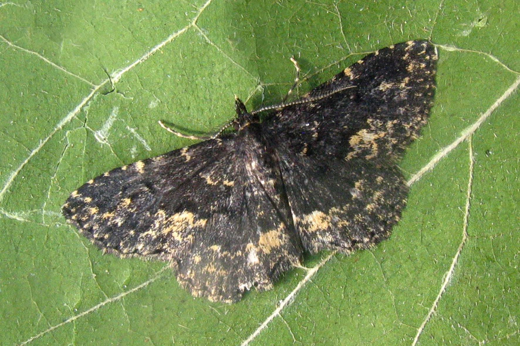 Voorvleugellengte: 11-14 mm. Deze spinneruil wordt vanwege de rusthouding in eerste instantie vaak aangezien voor een spanner; de vlinder houdt de uitgespreide vleugels plat tegen een boomstam of een paaltje gedrukt. De houtskoolachtige kleur van de vleugels en de crèmekleurige vlekjes en afzettingen langs de dwarslijnen vormen een kenmerkende combinatie. Bij afgevlogen exemplaren is in het zoomveld vaak een brede beige band zichtbaar.