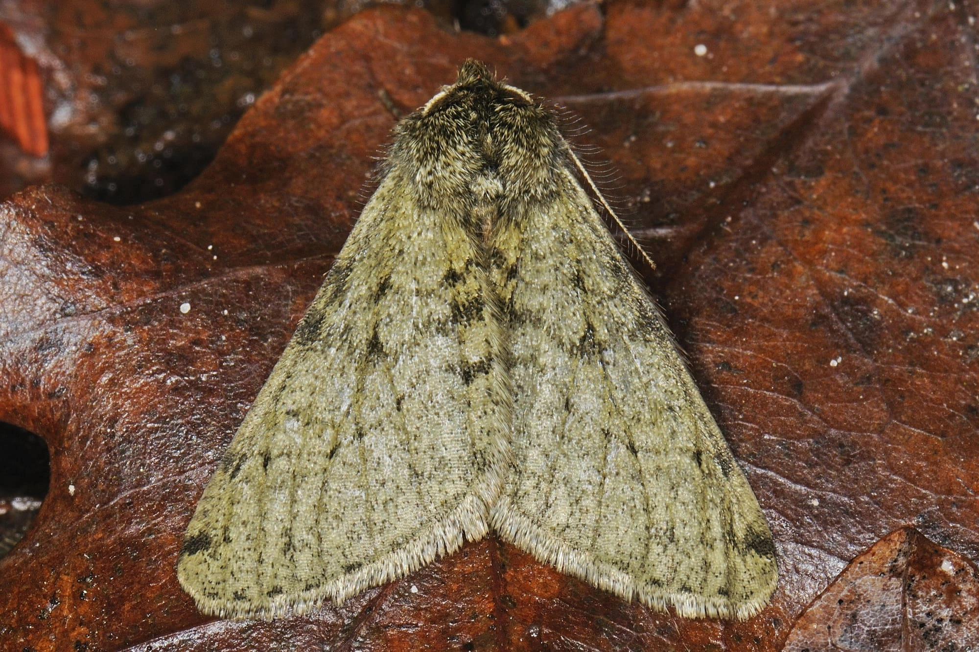 Begin januari-eind april in één generatie; wordt soms eind november al waargenomen. De vrouwtjes worden geregeld vlak na zonsopkomst onder aan boomstammen gevonden, soms ook iets later. De mannetjes komen goed op licht, vaak in grote aantallen.