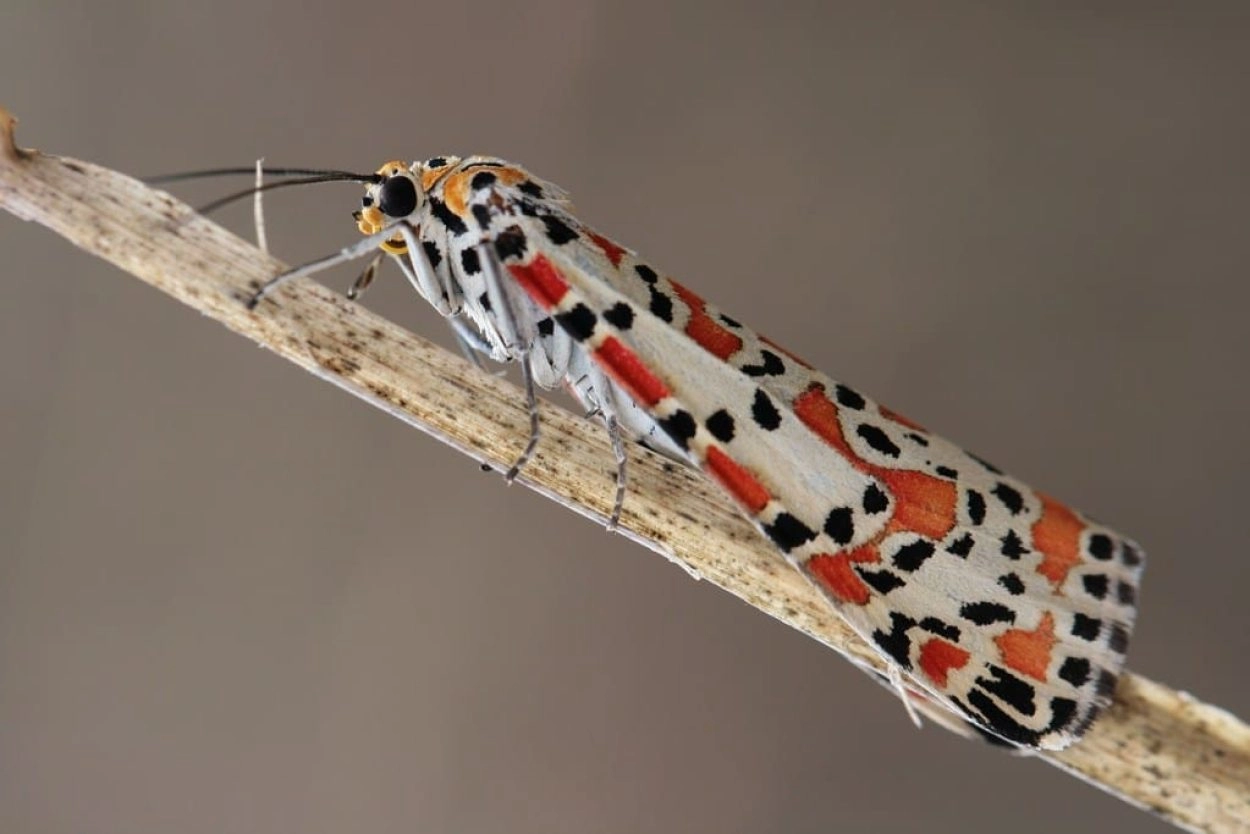 Voorvleugellengte: 15-22 mm. De voorvleugel is crèmekleurig met een variabel patroon van talrijke hoekige rode vlekken en iets kleinere zwarte vlekjes. Soms zijn de rode vlekken samengesmolten tot dwarsbanden of zijn de zwarte vlekken heel klein. De achtervleugel is wit met een onregelmatige zwarte zoom en vaak een kleine donkere middenvlek.