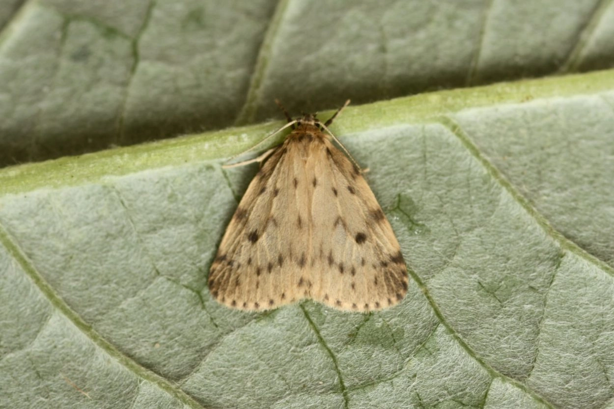 Voorvleugellengte: 10-11 mm. Een klein, broos en goed herkenbaar crèmekleurig beertje met brede afgeronde, enigszins doorschijnende vleugels. Op de voorvleugel bevinden zich twee rijen donkere streepjes of vlekjes en een donkere middenstip. De achtervleugel heeft een kleine donkere middenvlek en daarbuiten een rij donkere streepjes of vlekjes.