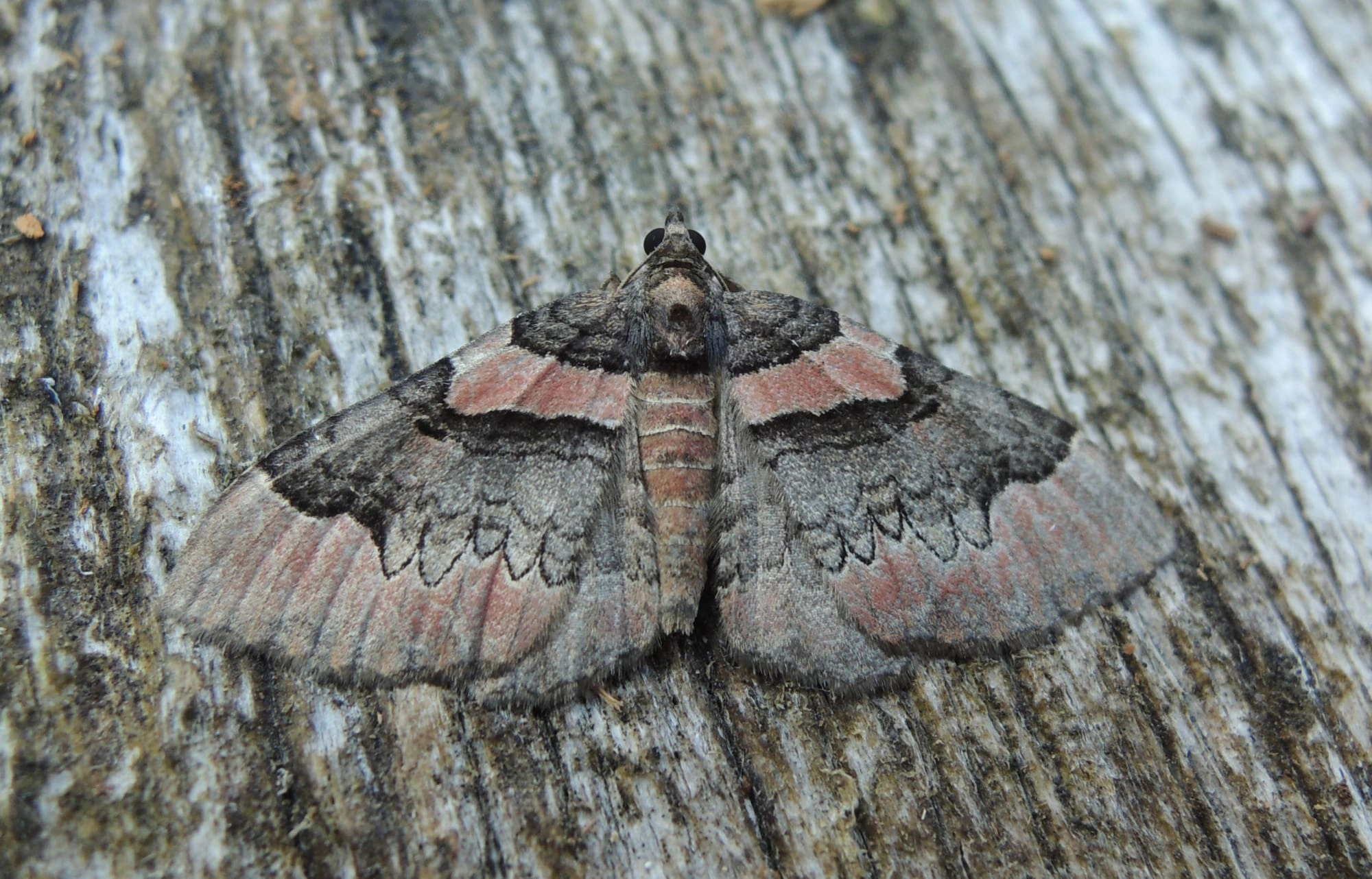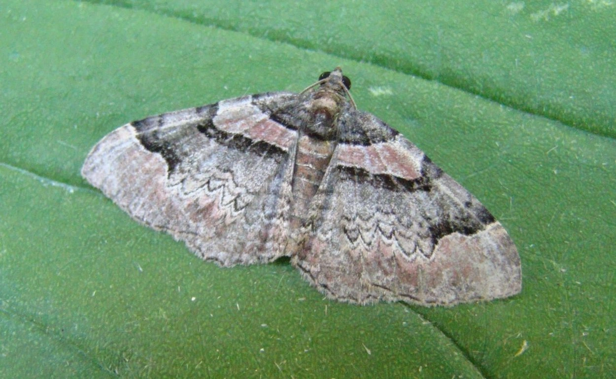 Voorvleugellengte: 13-15 mm. Verse vlinders zijn goed herkenbaar aan de roodbruine, bijna oranjeroze grondkleur. Op de voorvleugel is de grijze middenband aan de buitenzijde vanaf de voorrand tot halverwege de vleugel zwaar afgezet met zwart, daarna bestaat de buitenrand slechts uit een diep geschulpte, fijne zwarte lijn. Deze combinatie komt bij geen enkele andere soort voor. Er is weinig variatie in tekening.