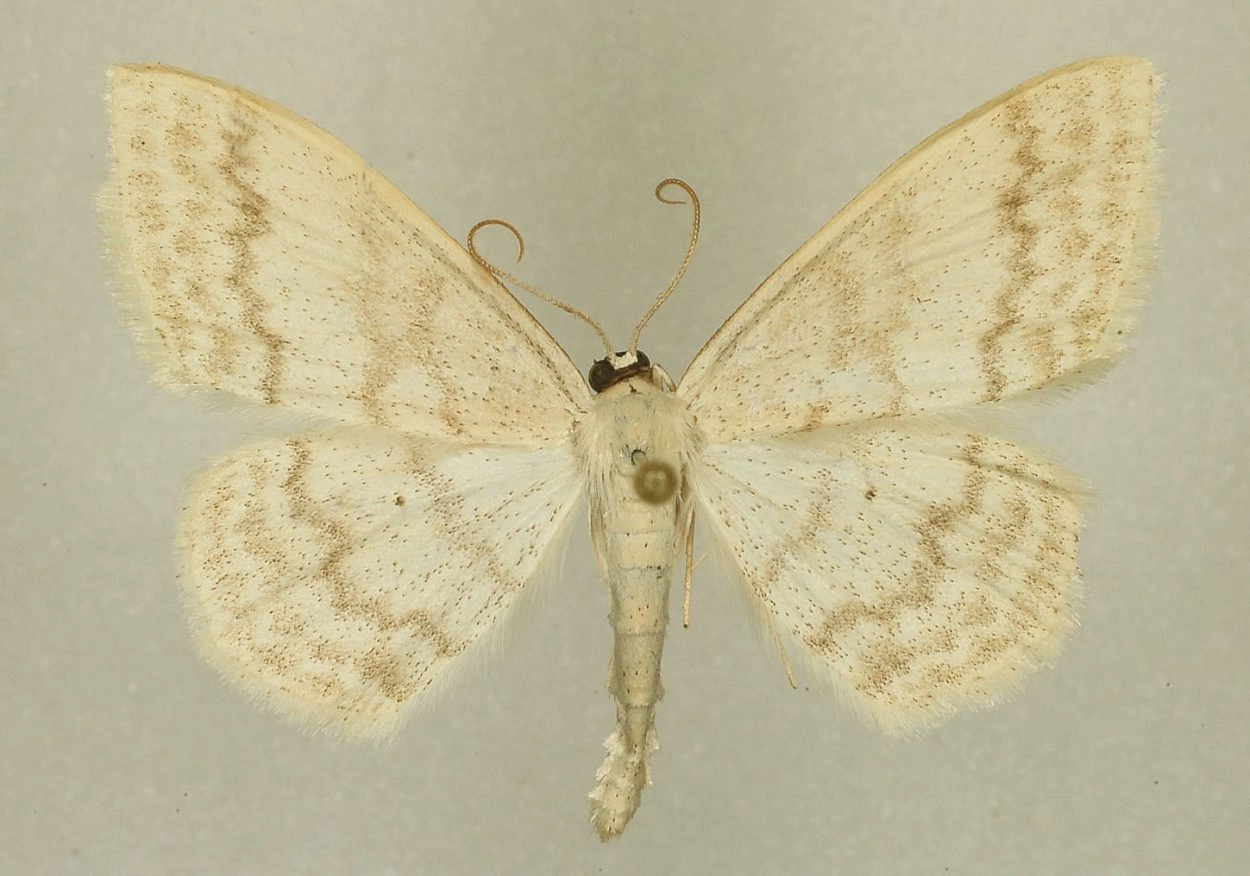 Voorvleugellengte: 13-16 mm. De roomkleurige vleugels zijn fijn bespikkeld met donkere schubjes. Van de lichtbruine tot grijsbruine gegolfde centrale dwarslijnen is de buitenste dwarslijn het meest scherp afgetekend, en daarbij opvallend grillig getand. De middelste dwarslijn is ook duidelijk, maar iets minder scherp afgetekend en gelijkmatiger verlopend. De binnenste dwarslijn is vaag of nauwelijks zichtbaar. De voorvleugel is tamelijk puntig. De achterrand van de achtervleugel loopt min of meer rond en mist een puntig uitsteeksel. Op de achtervleugel is een kleine, maar wel goed waarneembare zwarte middenstip aanwezig; op de voorvleugel is de middenstip doorgaans vaag of afwezig. De franjelijn is vaak zonder tekening, soms zichtbaar als een rij stipjes of streepjes.