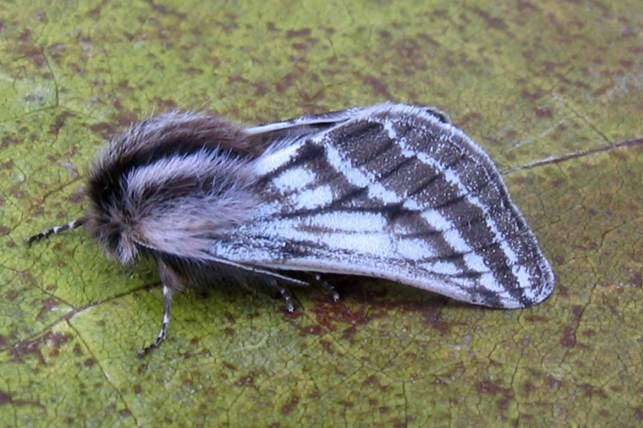 Voorvleugellengte: 13-16 mm. Het mannetje is gemakkelijk herkenbaar aan de zilvergrijze en bruine strepen op de voorvleugel. De hoeveelheid bruin varieert sterk, zelfs binnen een bepaalde populatie. Het vrouwtje heeft onontwikkelde vleugels. Zowel het mannetje als het vrouwtje hebben oranje ringen rond het achterlijf.