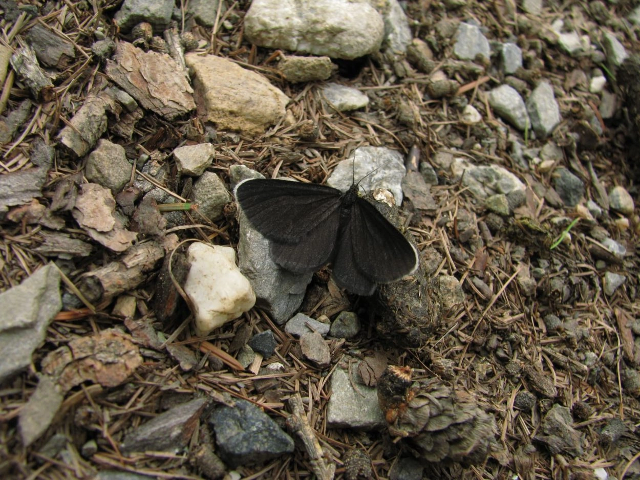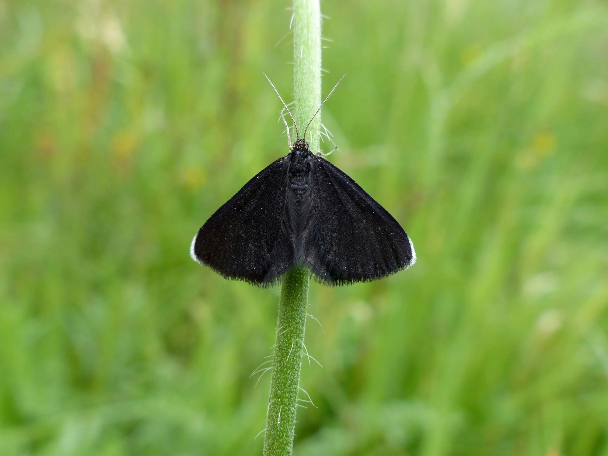 Voorvleugellengte: 12-15 mm. Een opvallend, vrijwel effen roetzwart spannertje, waarvan de kleur in de loop van de vliegtijd vervaagt tot bruinzwart. De voorvleugel heeft bij de vleugelpunt een opvallend kalkwit randje.
