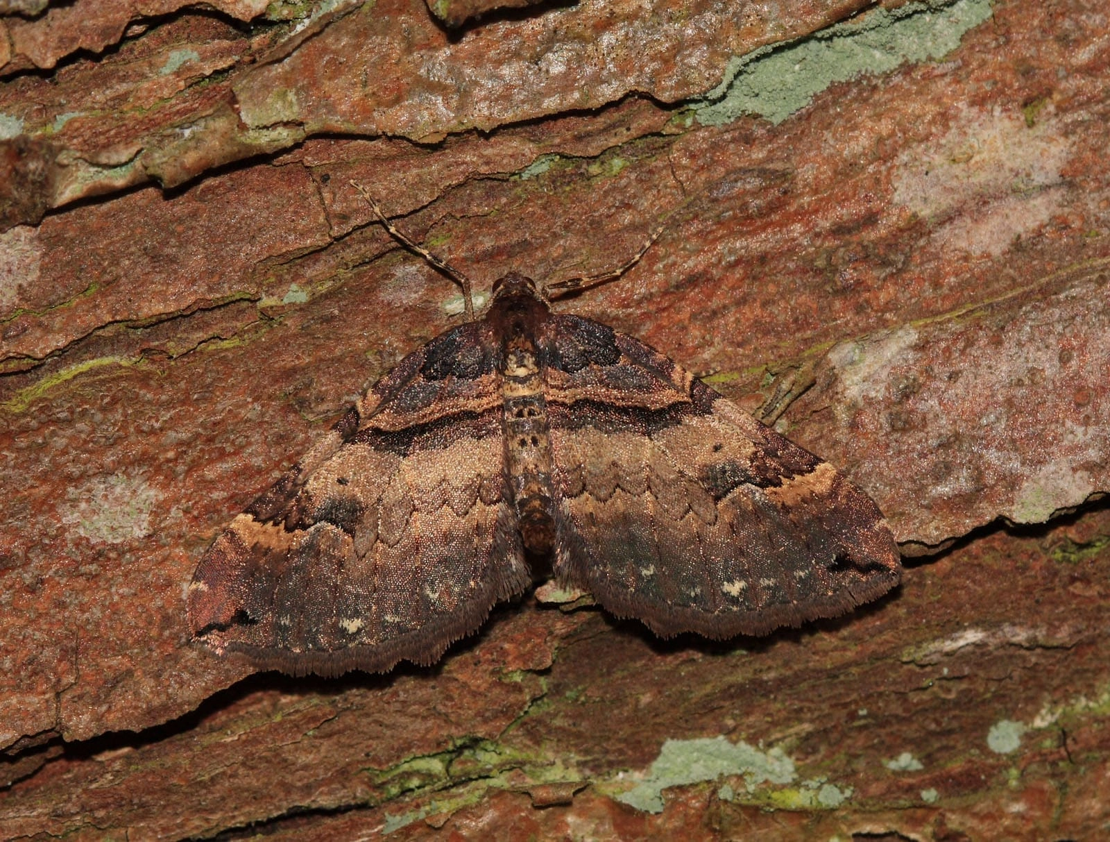 Voorvleugellengte: 14-18 mm. De overwegend bruine voorvleugel is tamelijk breed en enigszins puntig en heeft soms een antracietgrijze tint. Op de voorvleugel bevindt zich een groot aantal dwarslijnen en dwarsbanden die in wisselende mate met zwart zijn afgezet. Het middenveld van de voorvleugel heeft een opvallende strogele dwarsband met aan weerszijden daarvan een bruine band. Aan de buitenzijde hiervan loopt een vaak rood getinte lichtbruine band. De zoom van de voorvleugel is donkerbruin met antraciet. Opvallend is de geelachtig witte stip die een plaatselijke verdikking is van de golflijn.