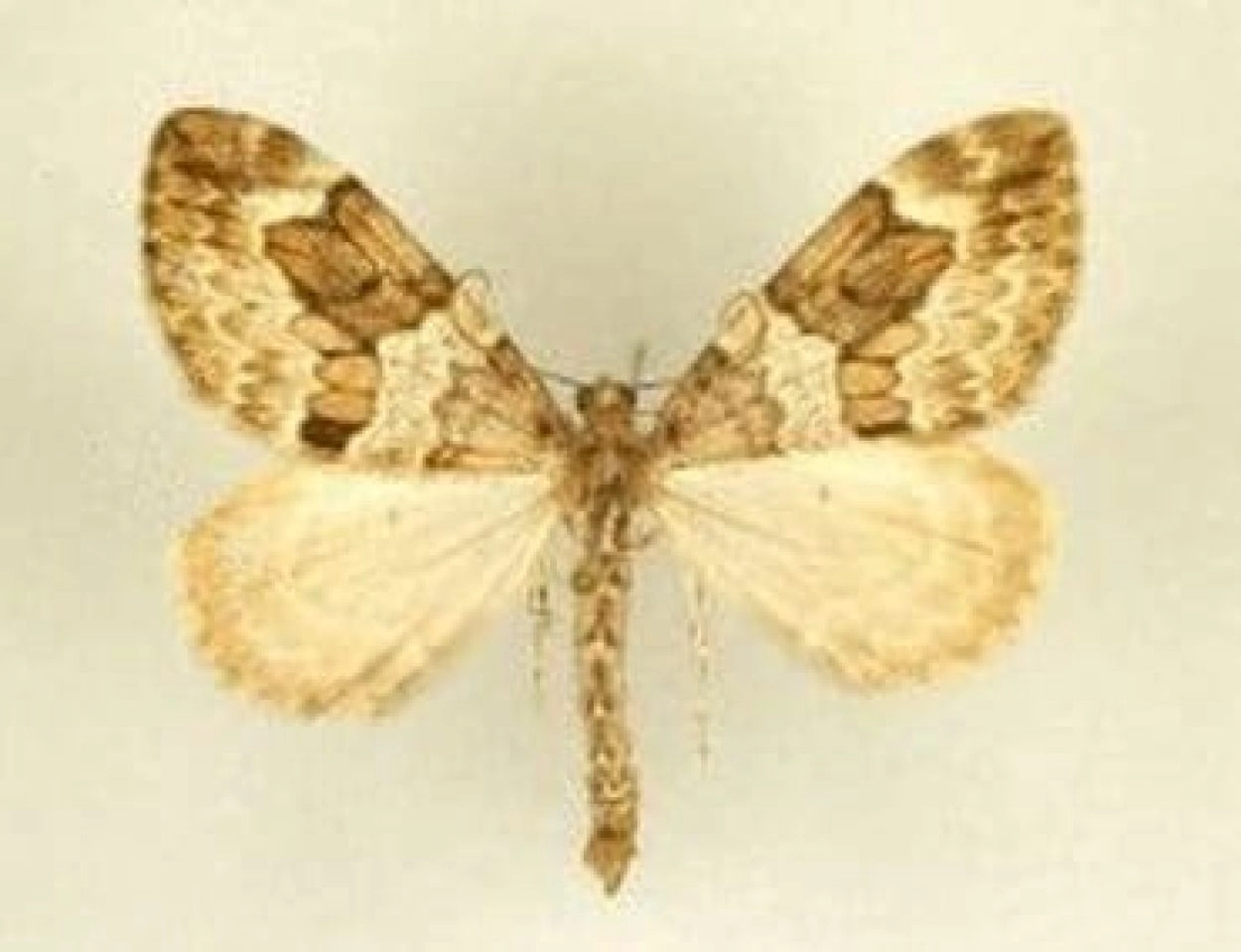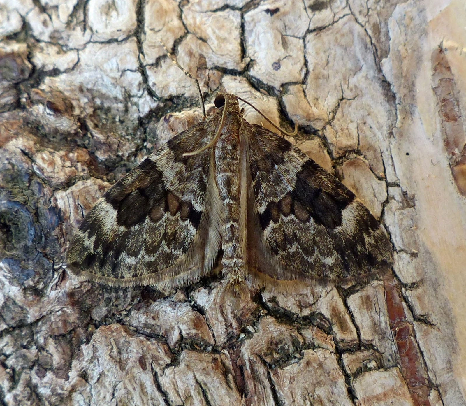 Voorvleugellengte: 13-17 mm. De grondkleur varieert van lichtgrijs via bruinachtig grijs tot bijna zwart. Heeft vaak een gevarieerde tekening met vooral vlak langs de beide zijden van de middenband een witte bestuiving. De middenband is meestal bruin getint en de randen hebben vaak een wat grillig verloop. De dwarslijnen op de voorvleugel zijn vaak tamelijk sterk getekend.