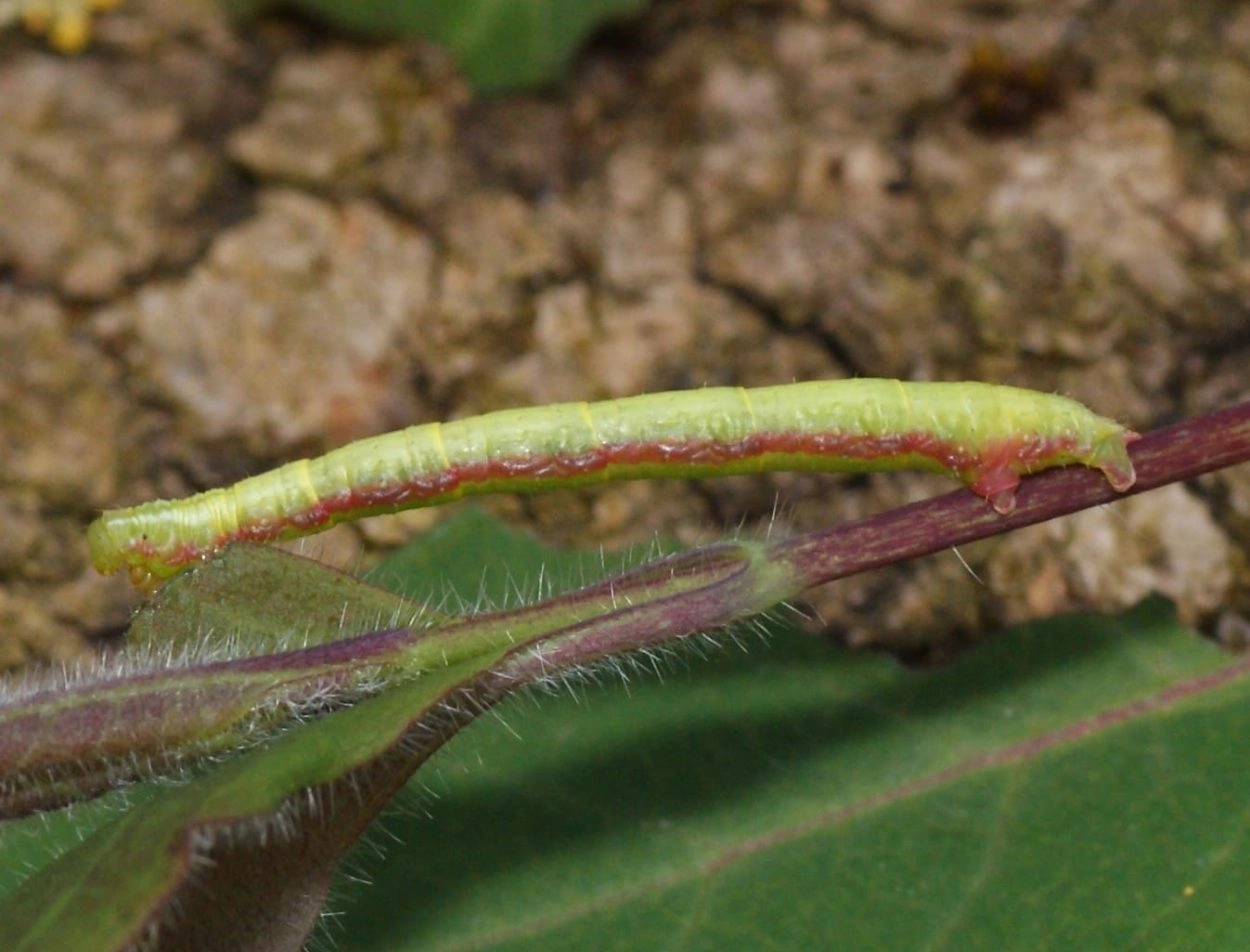 Tot 24 mm; groen met gele banden tussen de segmenten, soms met een brede rode band of rode veegjes onder de spiracula. Ongetekende rupsen lijken sterk op die van C. citrata, maar zijn slanker en hebben twee opvallende puntjes op de staart.