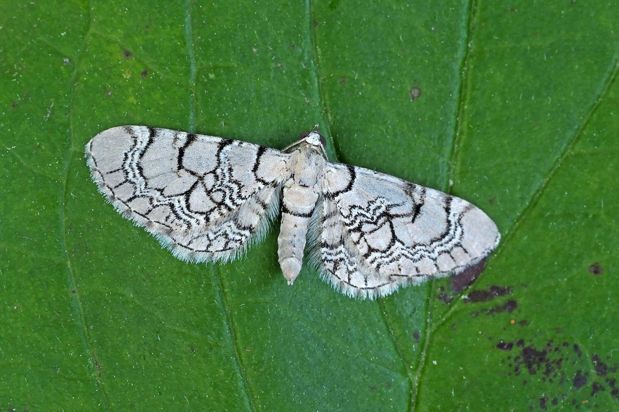 Voorvleugellengte: 10-14 mm. Een fraai getekende soort die niet met geen enkele andere dwergspanner te verwarren is. De grondkleur van de voorvleugel varieert van witachtig bruin tot grijsachtig bruin. Op de vleugel bevindt zich een karakteristiek patroon van zwarte dwarslijnen en aders en twee smalle, donker afgezette witachtige dwarsbanden; de intensiteit van dit patroon kan enigszins variëren.