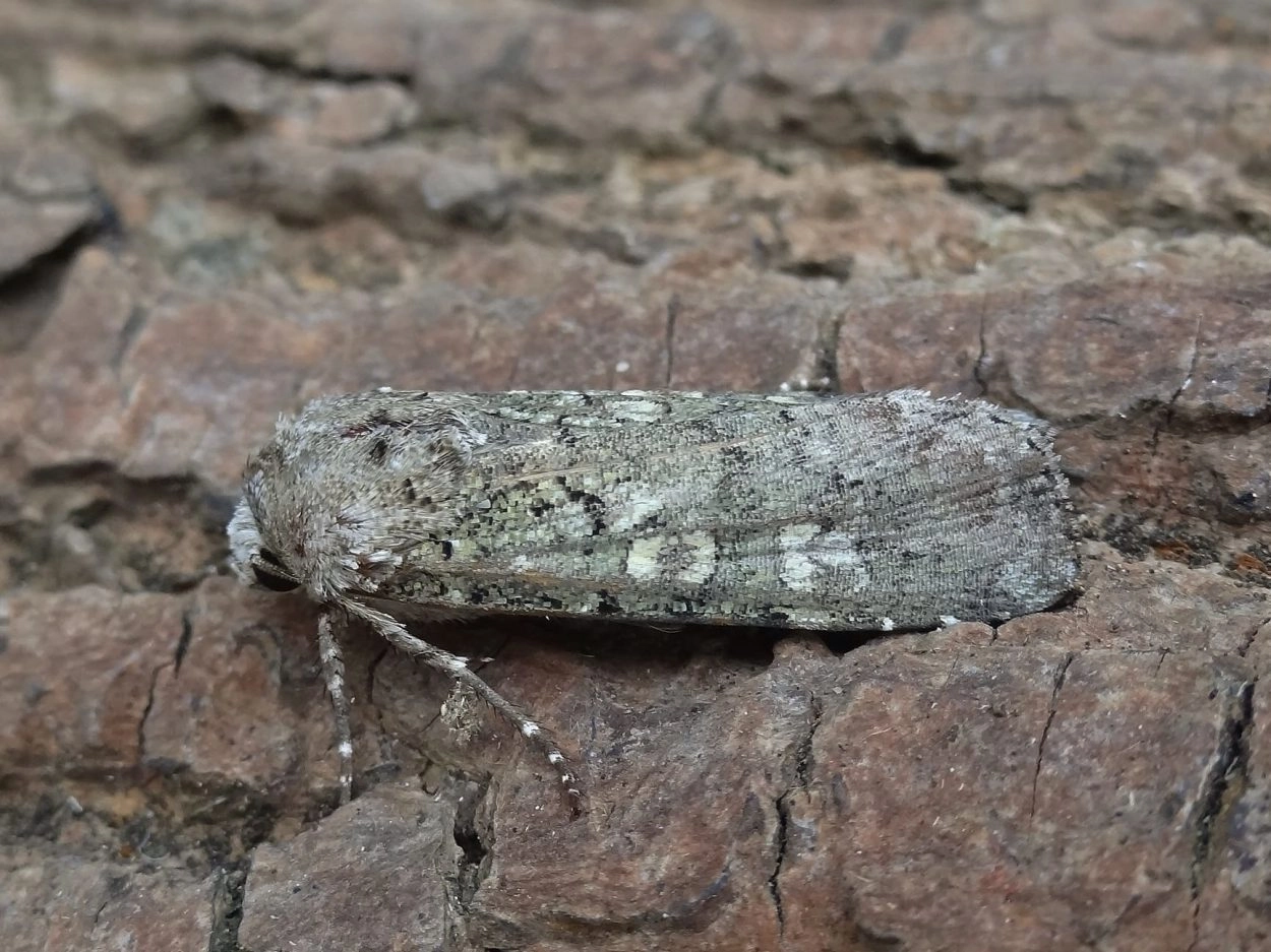 Voorvleugellengte: 17-21 mm. Een zilverachtige korstmosgroene uil met lange slanke voorvleugels. Is door de rusthouding, waarin de vleugels elkaar bijna geheel overlappen, goed te onderscheiden van andere groene uilen.
