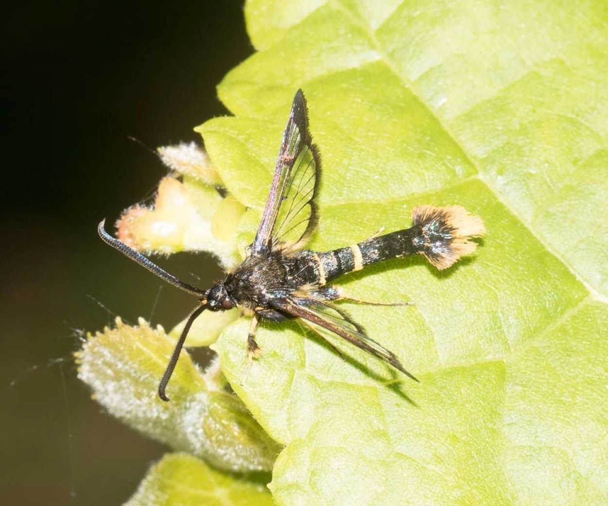 De grote berkenwespvlinder () en het vrouwtje van de eikenwespvlinder () hebben ook een opvallend staartpluimpje; zij hebben echter gele lijnen op het borststuk.