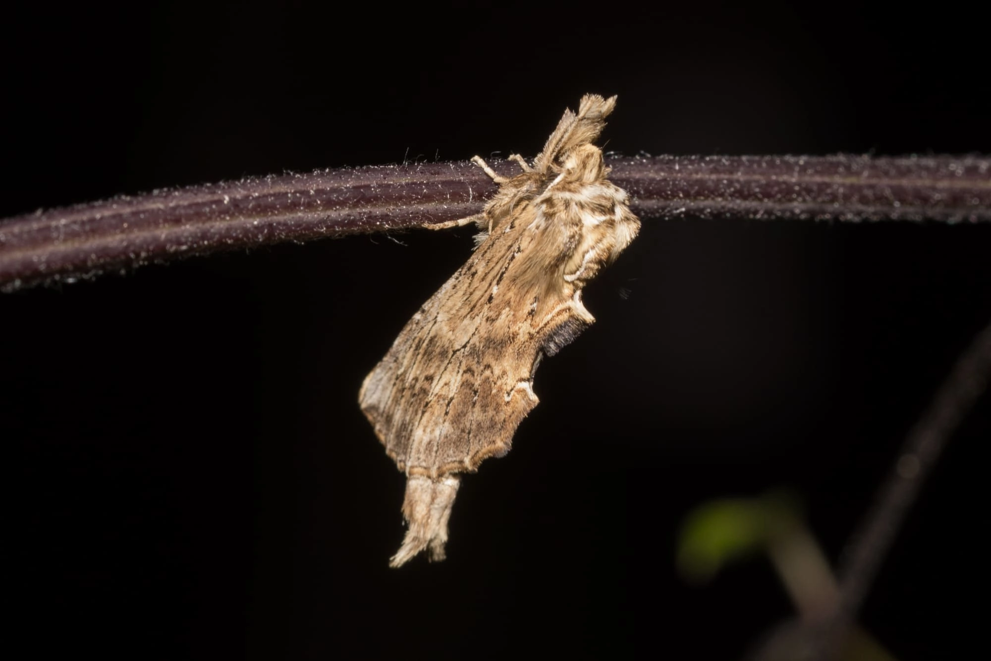 Rups: juni-september. De soort overwintert als pop in een cocon in de strooisellaag onder de waardplant.