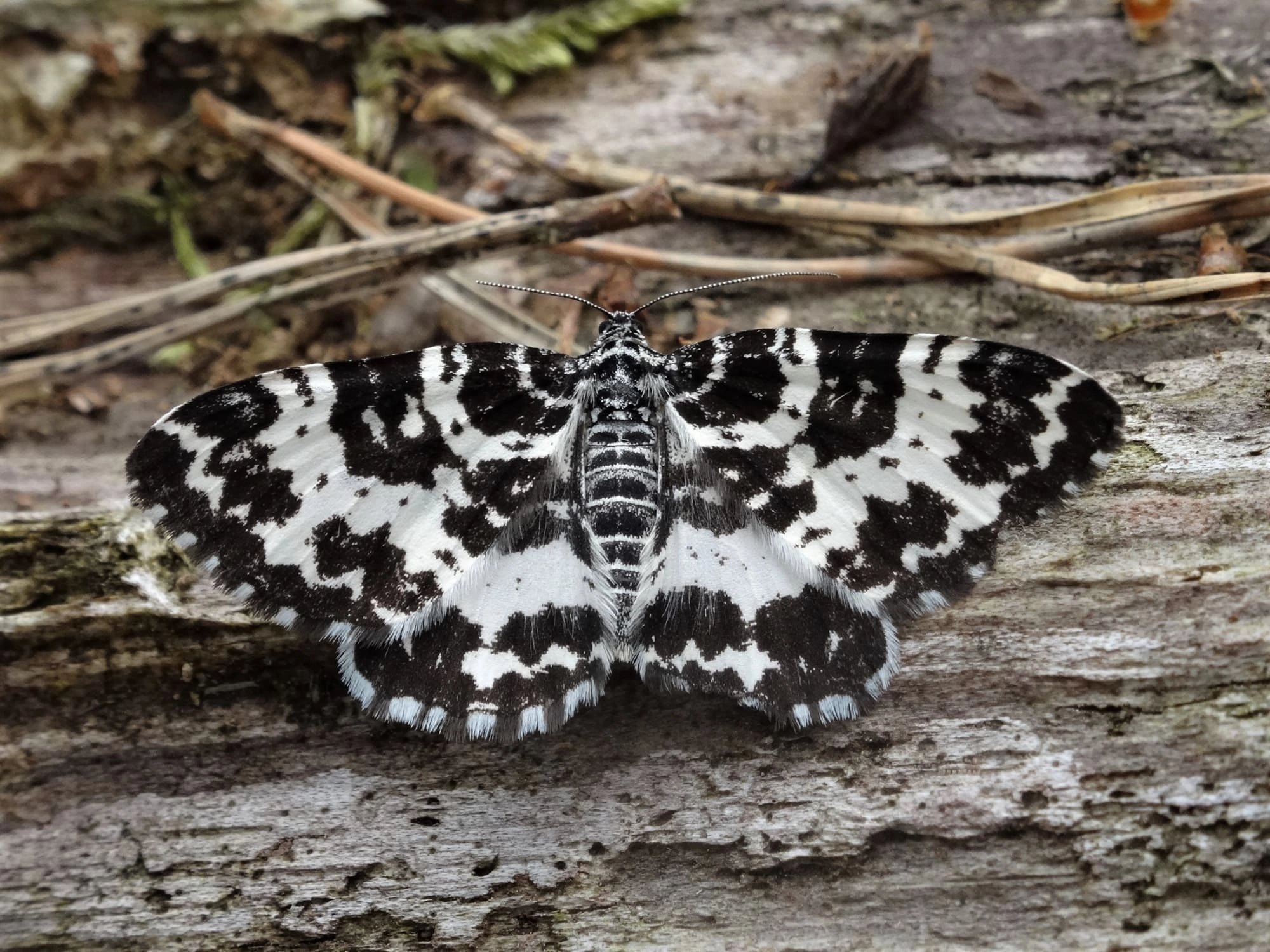 Voorvleugellengte: 14-19 mm. Goed te herkennen aan de kenmerkende zwart-witte tekening op de voor- en achtervleugel die bestaat uit een afwisseling van zwarte en witte dwarsbanden. Karakteristiek zijn de witte ‘speerpunten’ die vanuit de brede buitenste witte dwarsband de vleugelzoom insteken. De grens tussen deze dwarsband en het zwarte zoomveld is onregelmatig geschulpt. Aan de binnenzijde van de vleugel ligt nog een duidelijk en relatief breed wit dwarsbandje; dit staat soms in verbinding met de brede buitenste witte dwarsband. De dwarsbanden bevatten doorgaans relatief weinig (op de achtervleugel vaak geen) kleine zwarte stipjes. Vooral de buitenste witte dwarsband maakt daardoor een des te bredere witte indruk. Zowel de grootte als de tekening, met name de verhouding tussen zwart en wit, zijn variabel.