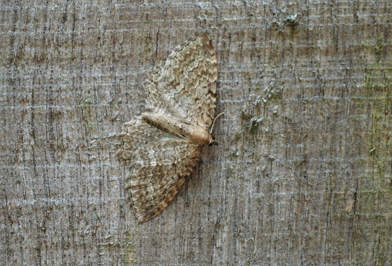 Grote berberisspanner (Hydria cervinalis).N.B.: vergelijk behalve de uiterlijke kenmerken ook de tijd van het jaar waarin de rupsen voorkomen, het habitat en de waardplant(en).