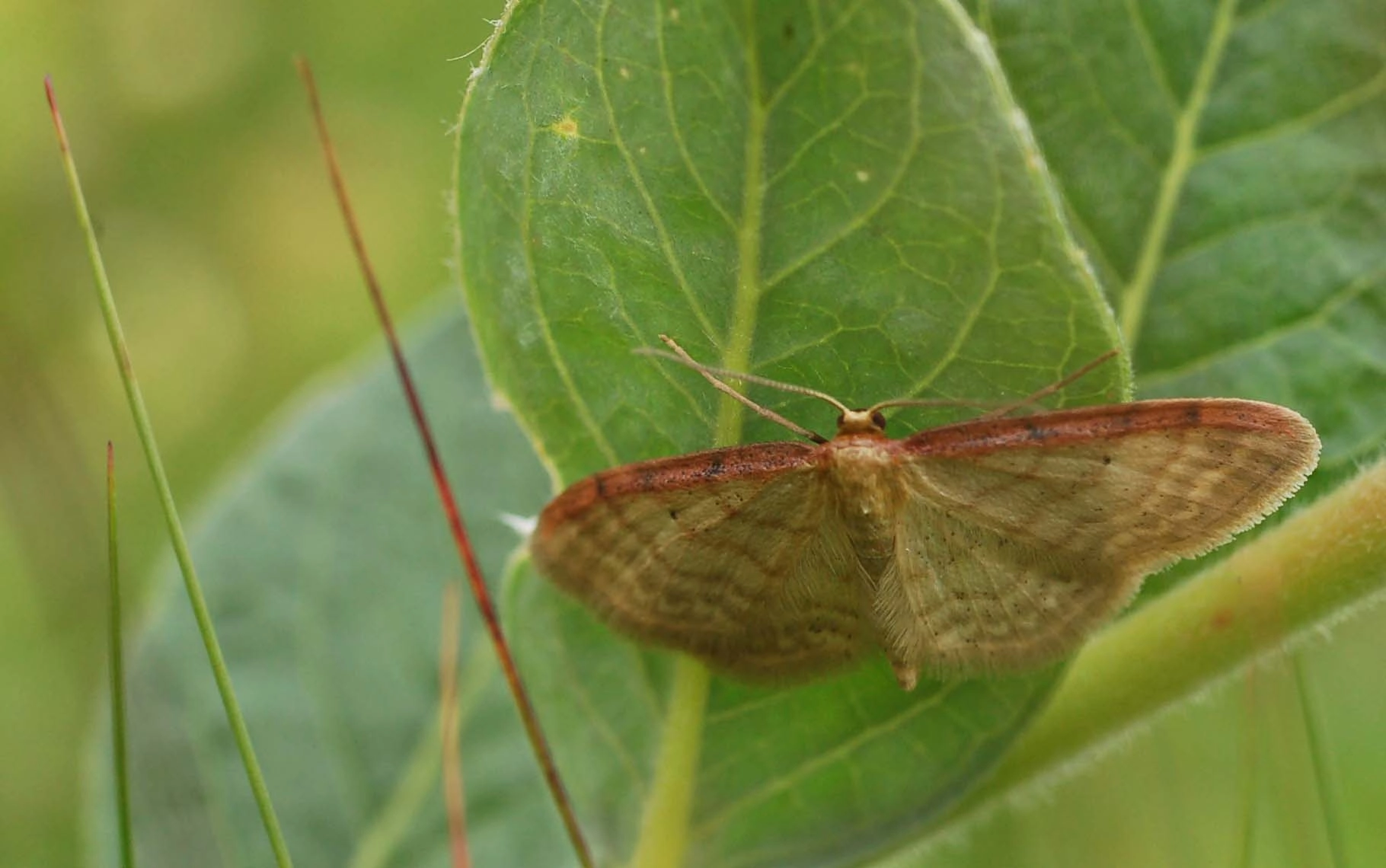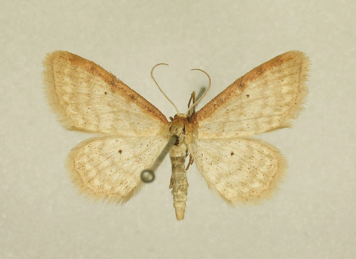 Voorvleugellengte: 9-11 mm. Goed te herkennen aan de roodachtig bruine voorrand van de voorvleugel. De vleugels zijn vrij smal, meestal heel licht bruin met een enigszins gele tint, maar soms ook meer grijsachtig van kleur. De franjelijn bestaat uit een zeer fijne, nauwelijks onderbroken donkere lijn, die vooral met een loep goed te zien is.